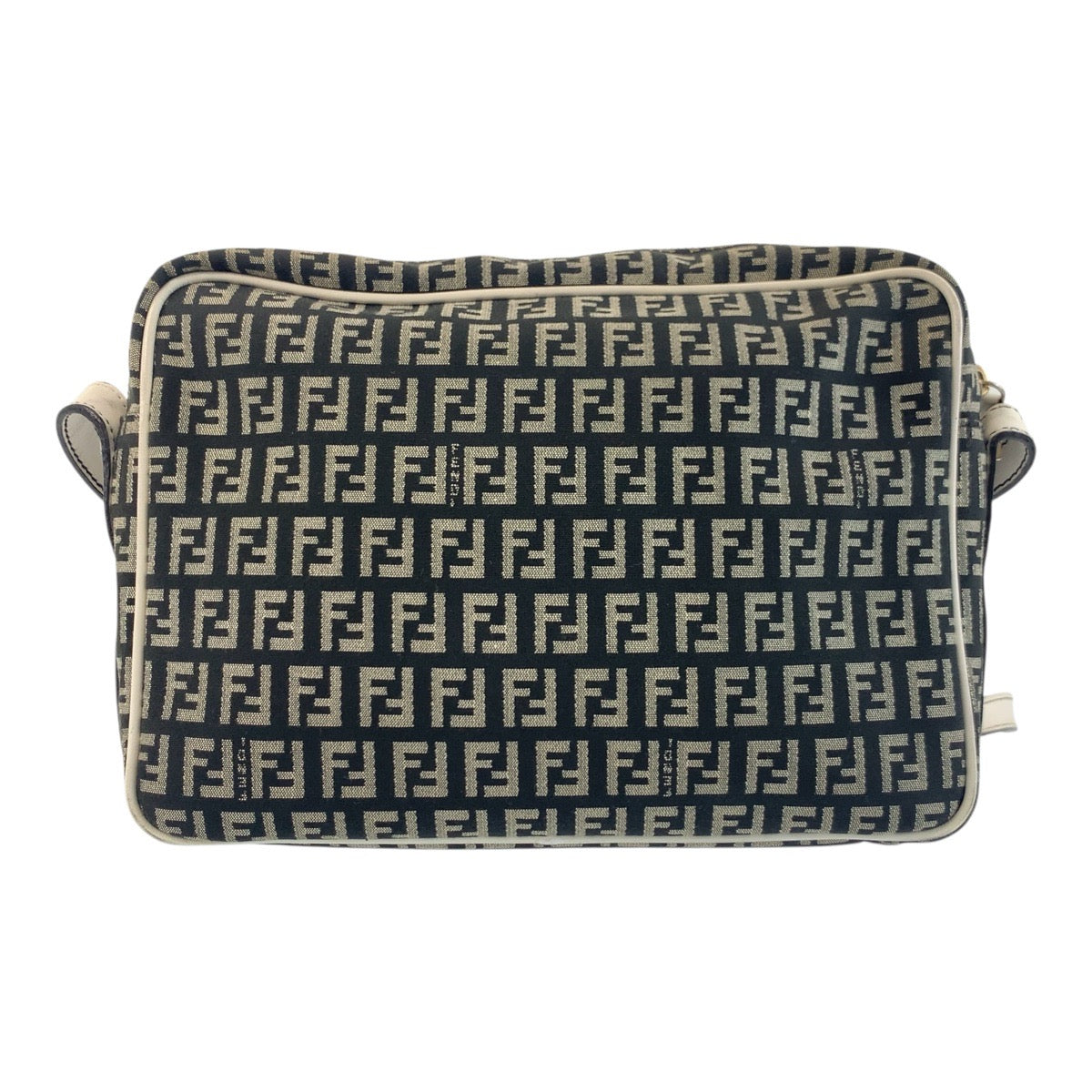 FENDI Shoulder Bag Canvas, Leather Black White Gold Metal Shoulder Bag pochette Zucchino Mamma Women Used Authentic