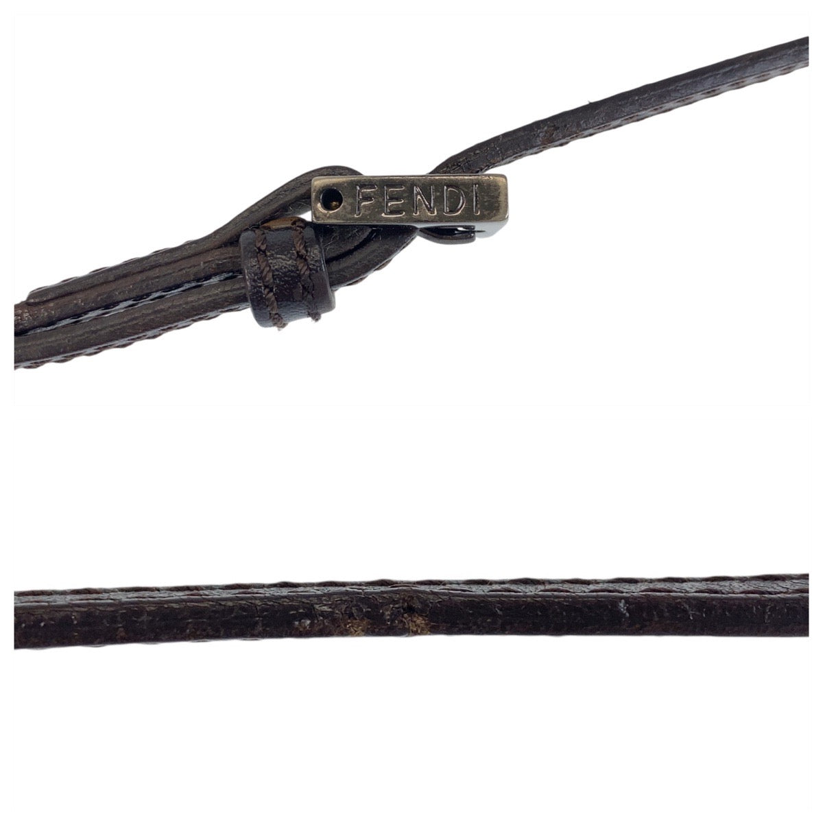 FENDI Shoulder Bag canvas Brown Silver Metal Shoulder Bag pochette Zucchino Kamsepochet Women Used Authentic
