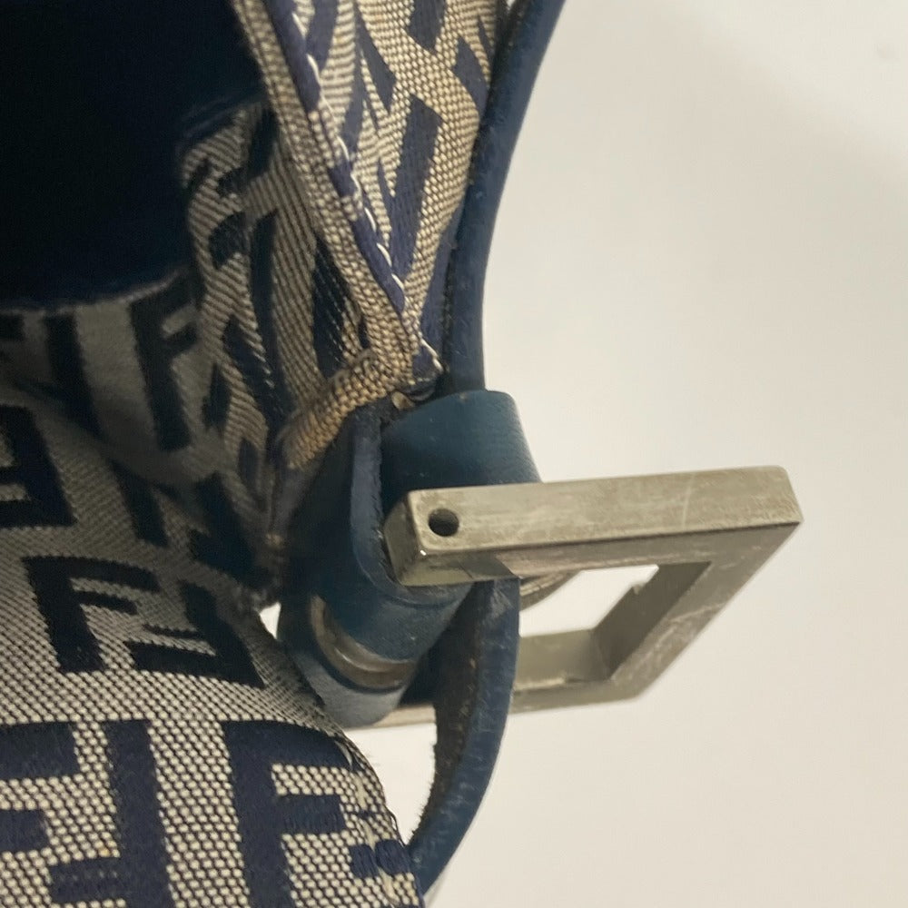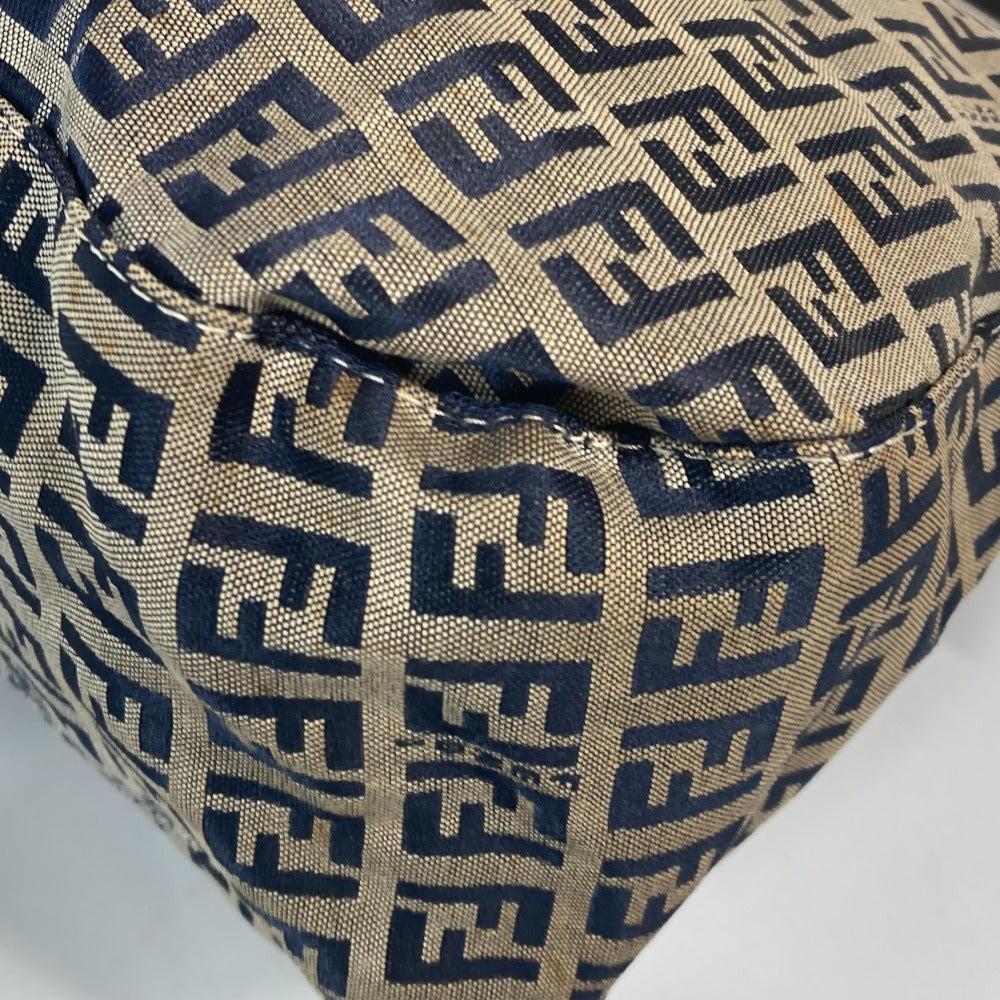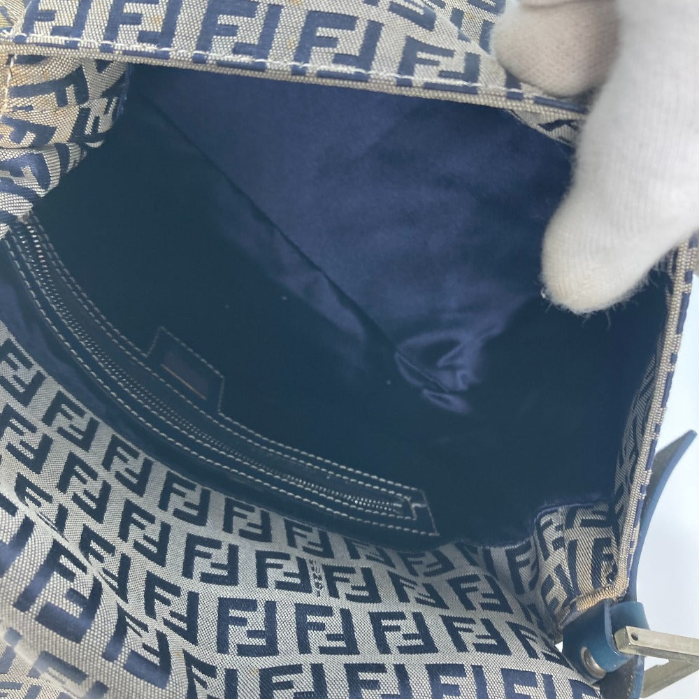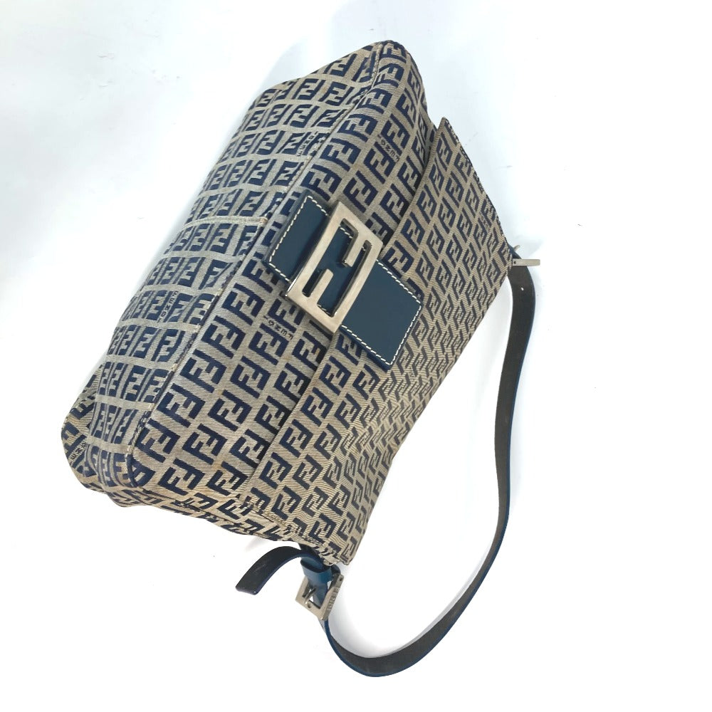 FENDI Shoulder Bag Canvas / leather Navy shoulder bag Mamma Bucket Women Used Authentic