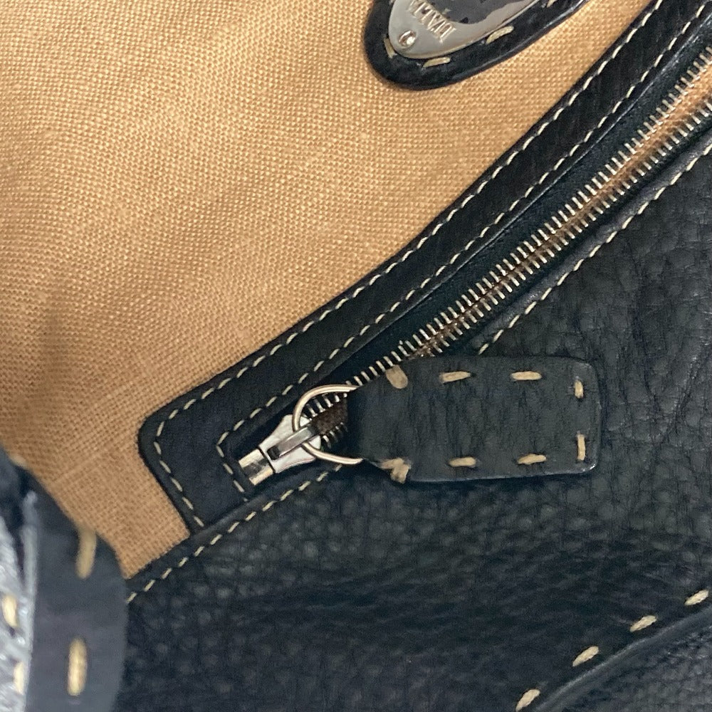 FENDI Shoulder Bag leather black vintage Celeria Women Used Authentic