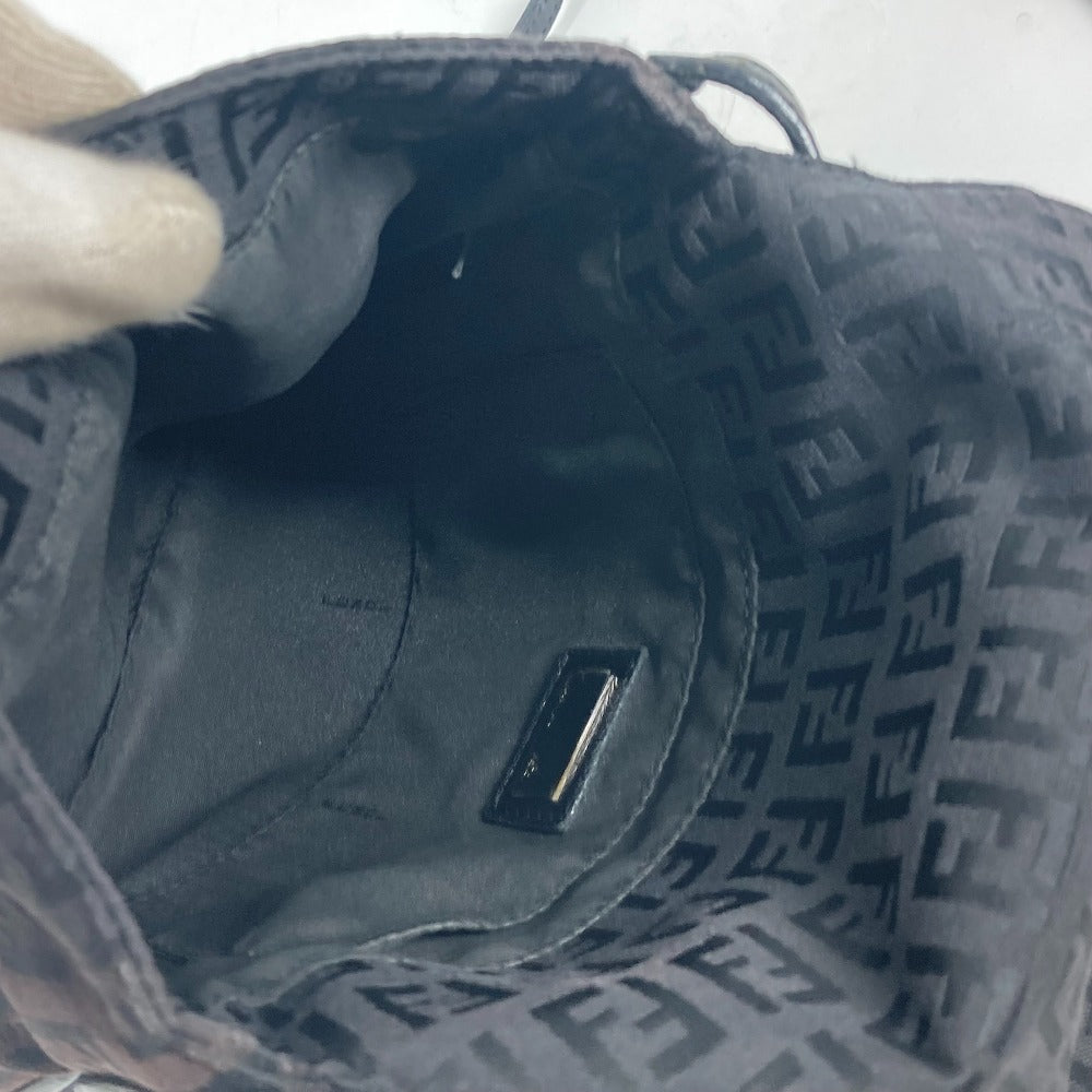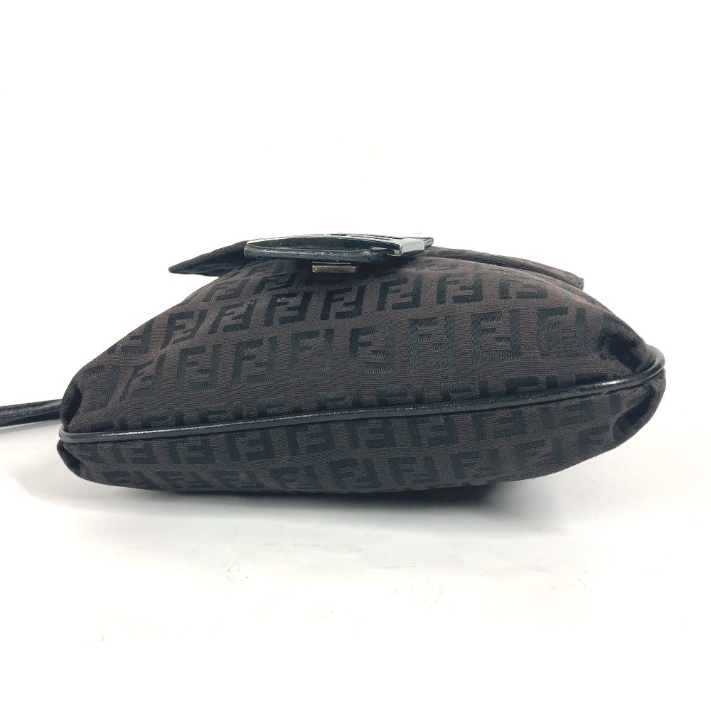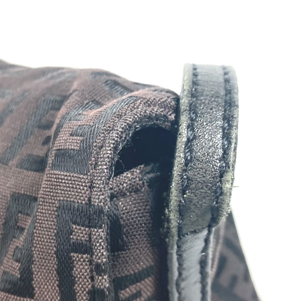 FENDI Shoulder Bag Leather / canvas Brown Zucchino logo flap