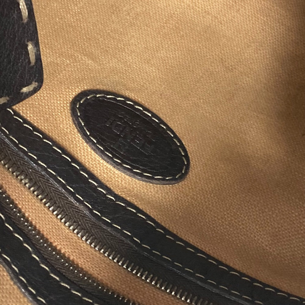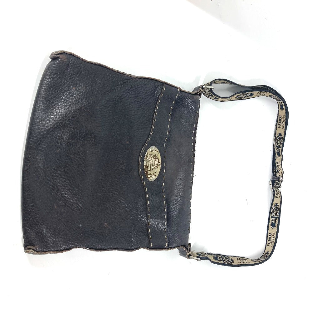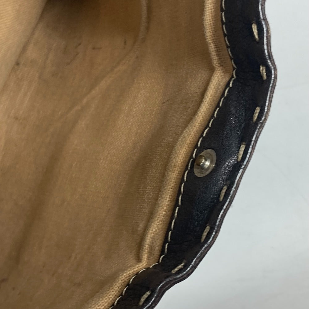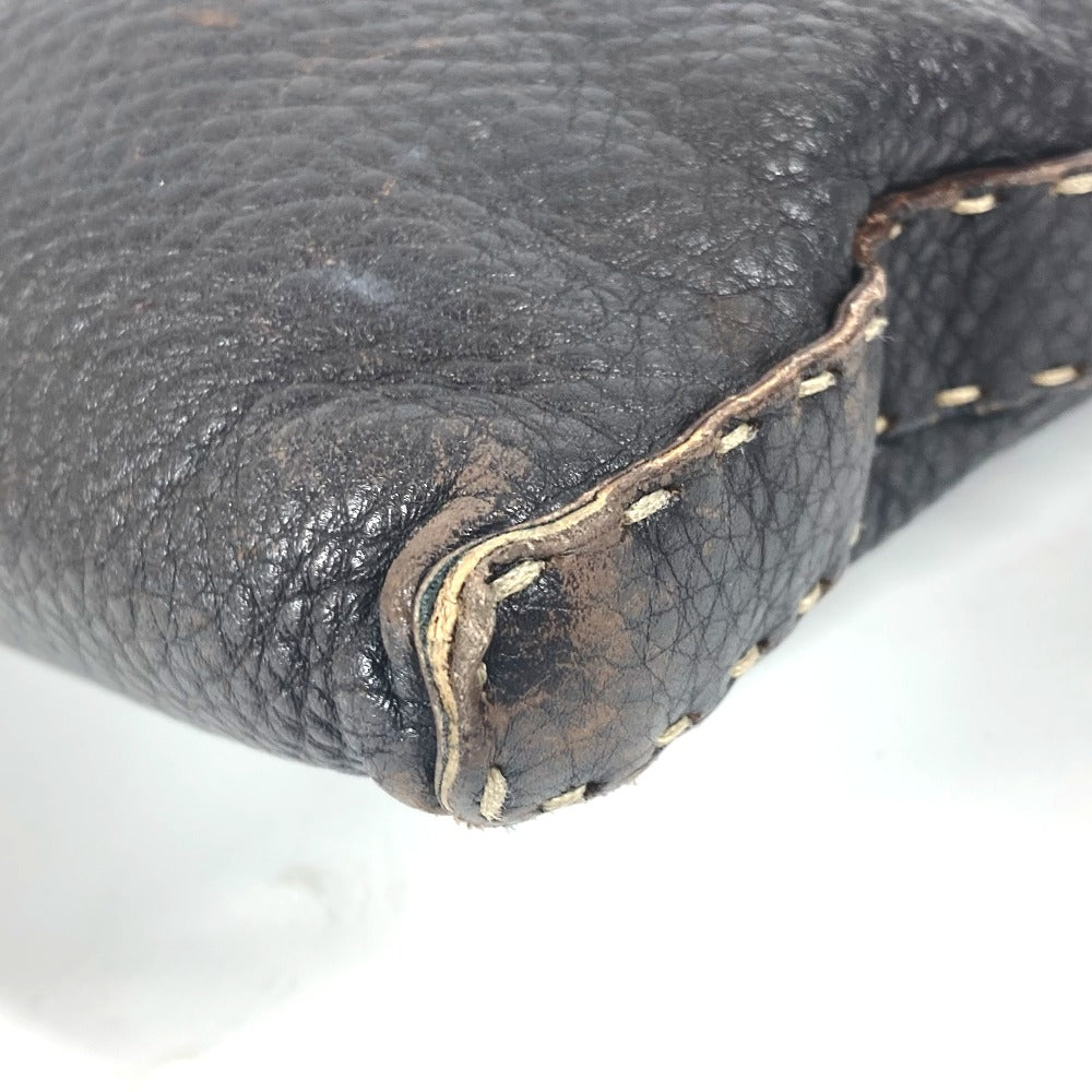 FENDI Shoulder Bag leather Dark brown Pochette Selleria logo