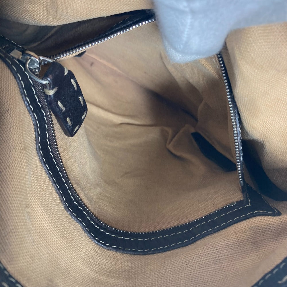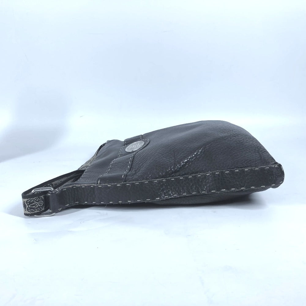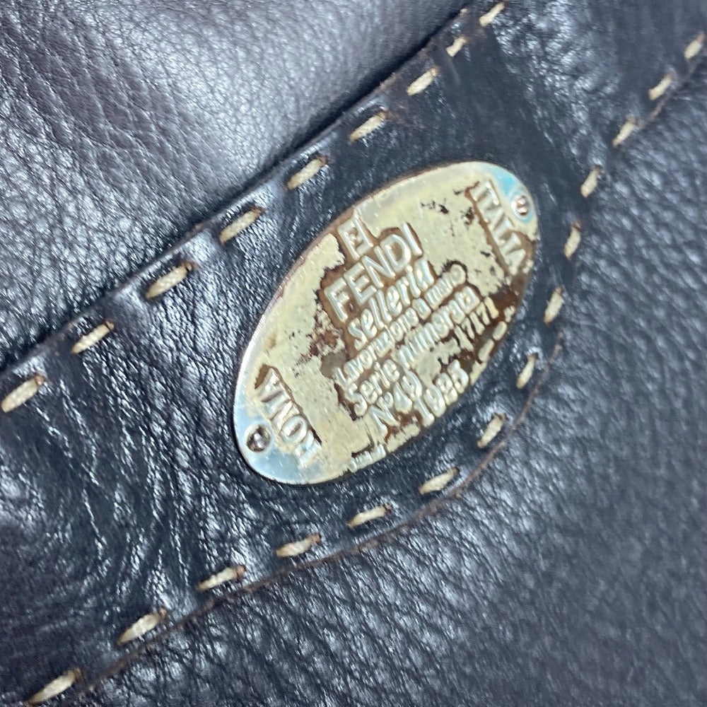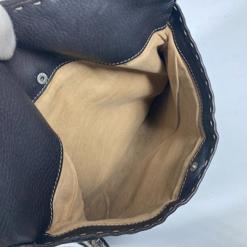 FENDI Shoulder Bag leather Dark brown Pochette Selleria logo
