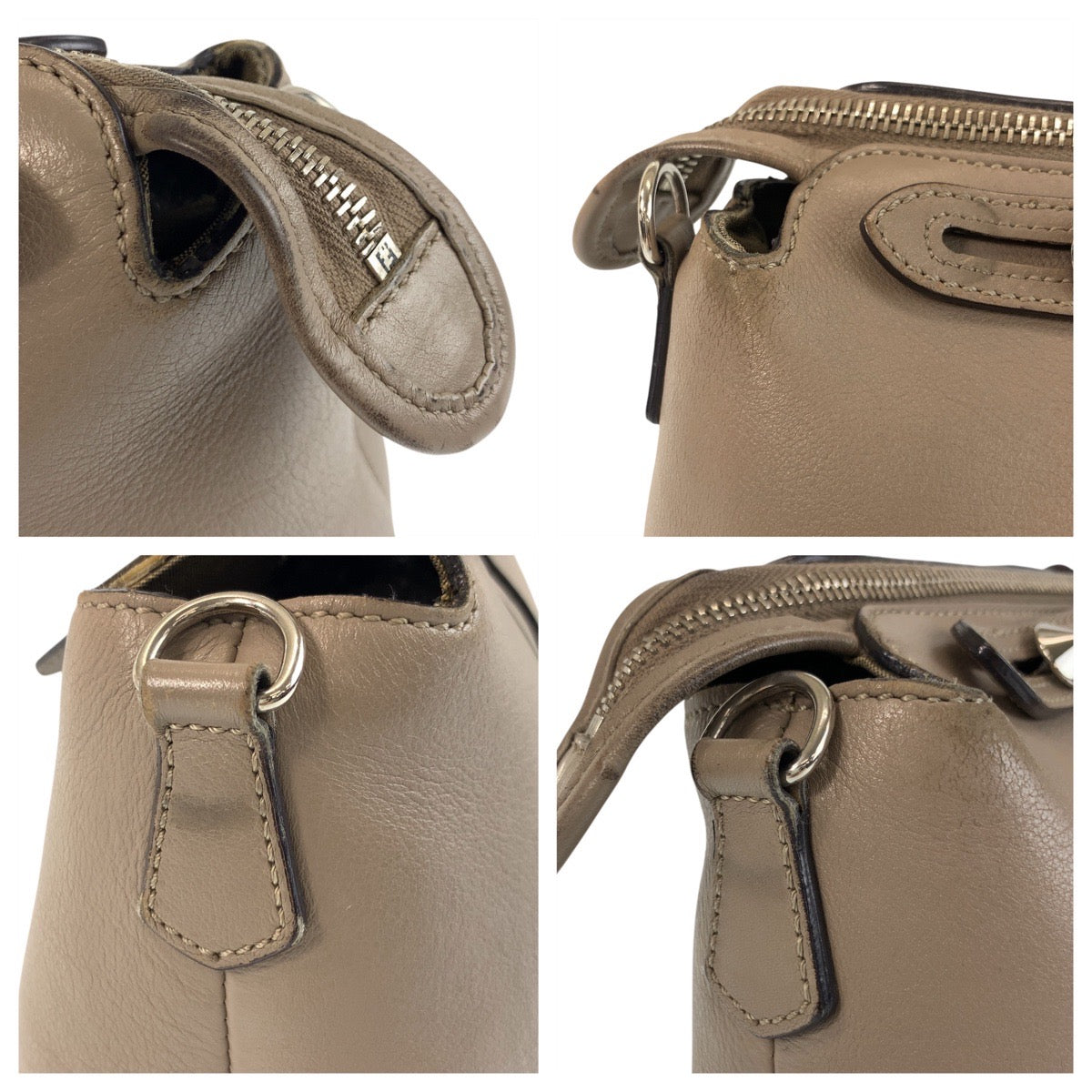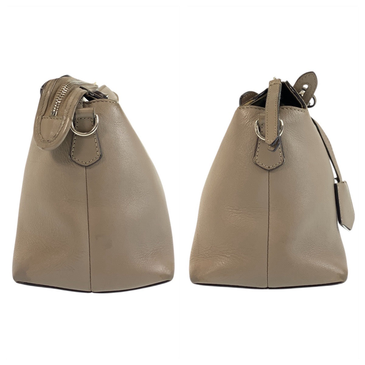 FENDI Shoulder Bag leather Greige SilverMetal Shoulder Bag Handbag 2way By the way medium Women Used Authentic