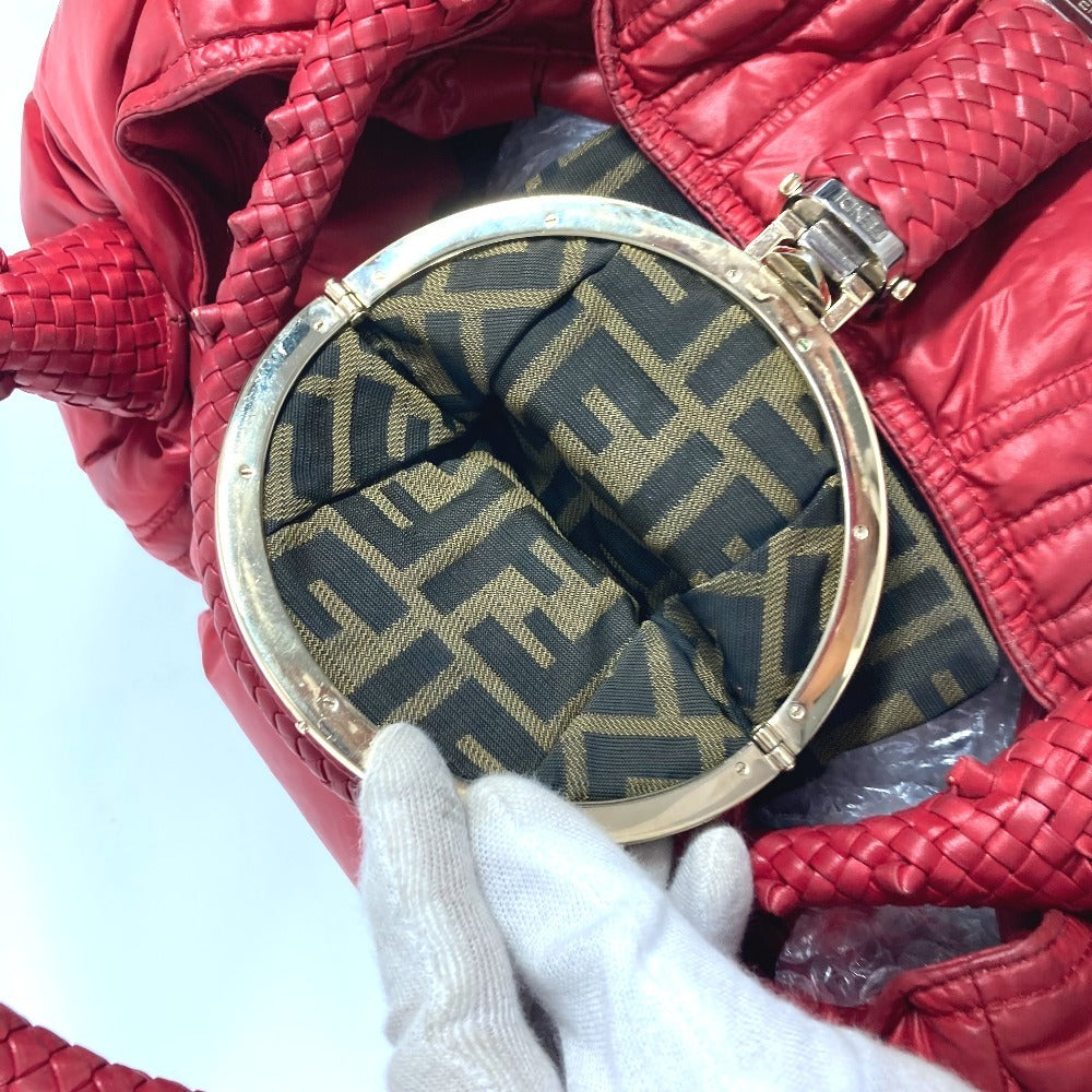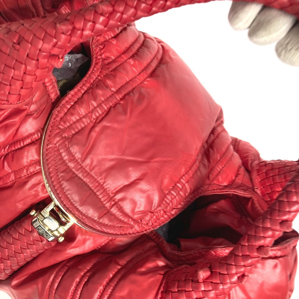 FENDI Shoulder Bag Nylon Red Zucca studded spy bag Women Used Authentic