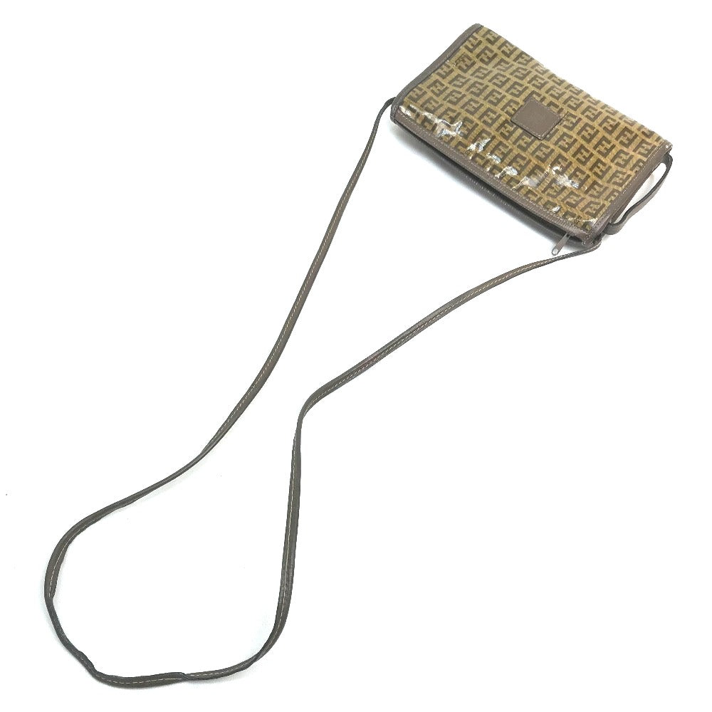 FENDI Shoulder Bag Plastics/Leather Brown Crossbody FF Zucca Pattern Women Used Authentic