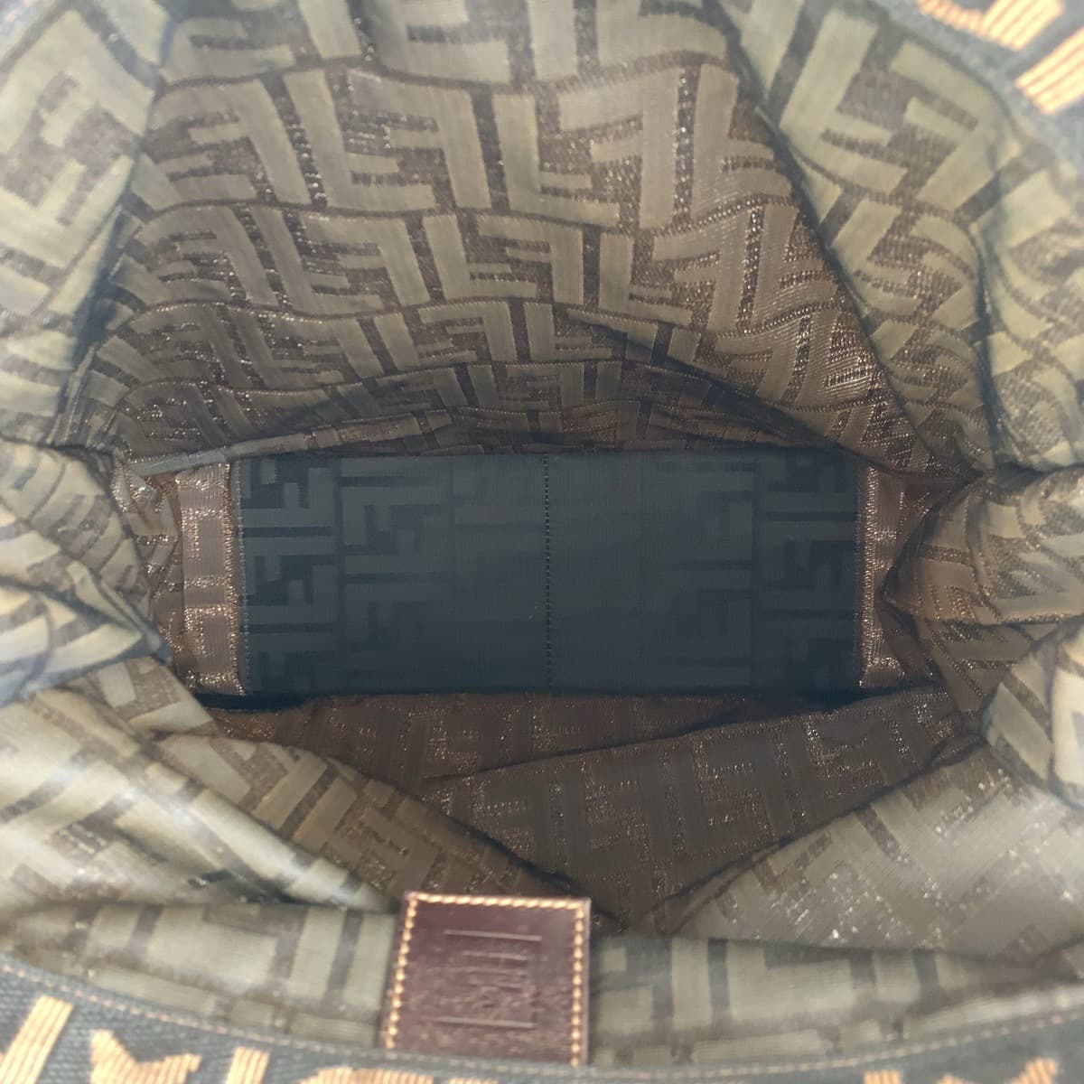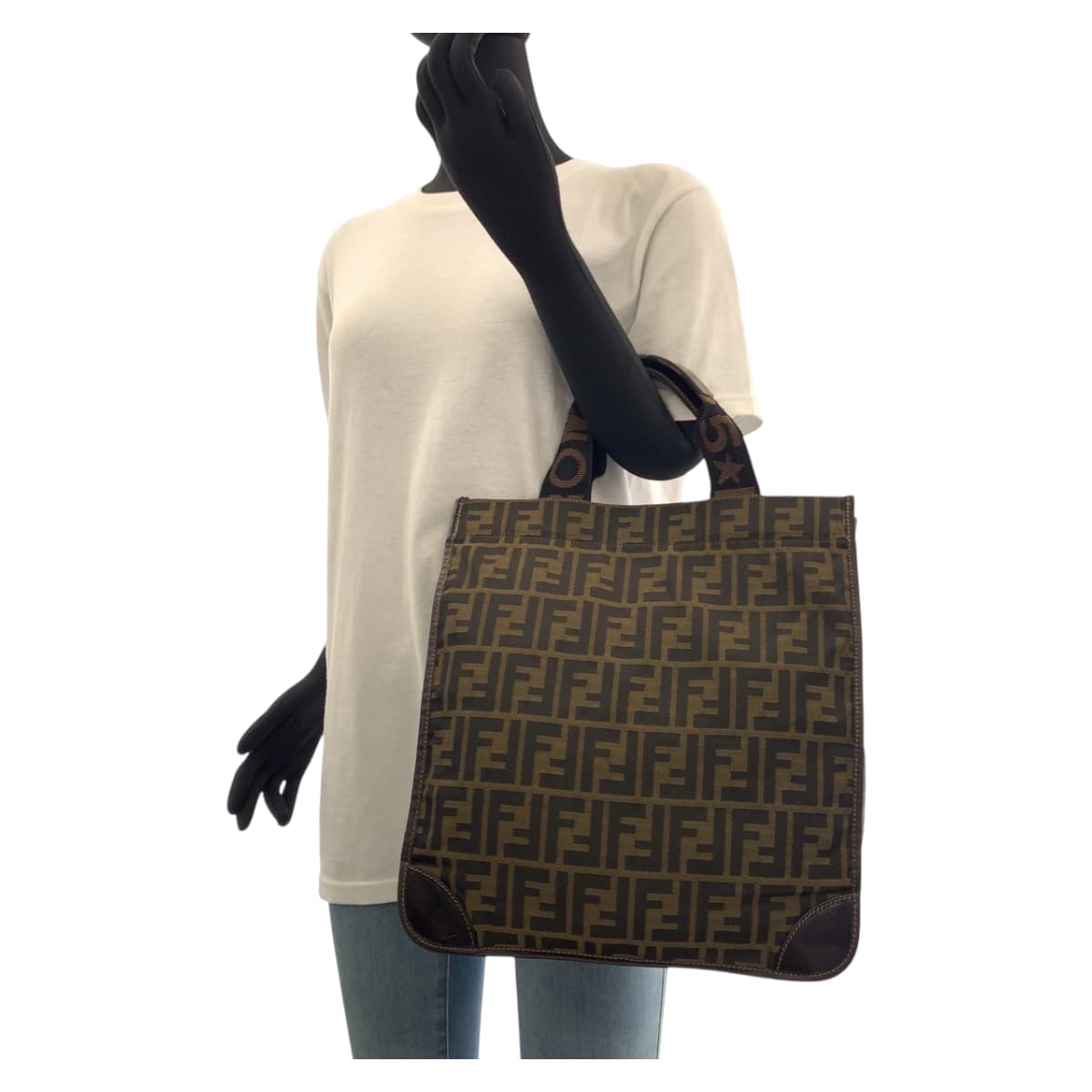 FENDI Tote Bag Canvas, Leather Brown Silver Metal Tote Bag handbag Zucca folding Women Used Authentic