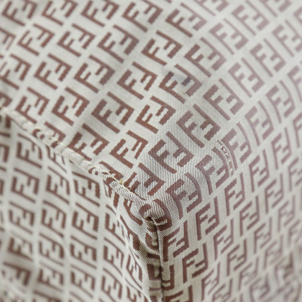 FENDI Tote Bag Nylon, Calfskin Brown micro zucchini Women Used Authentic