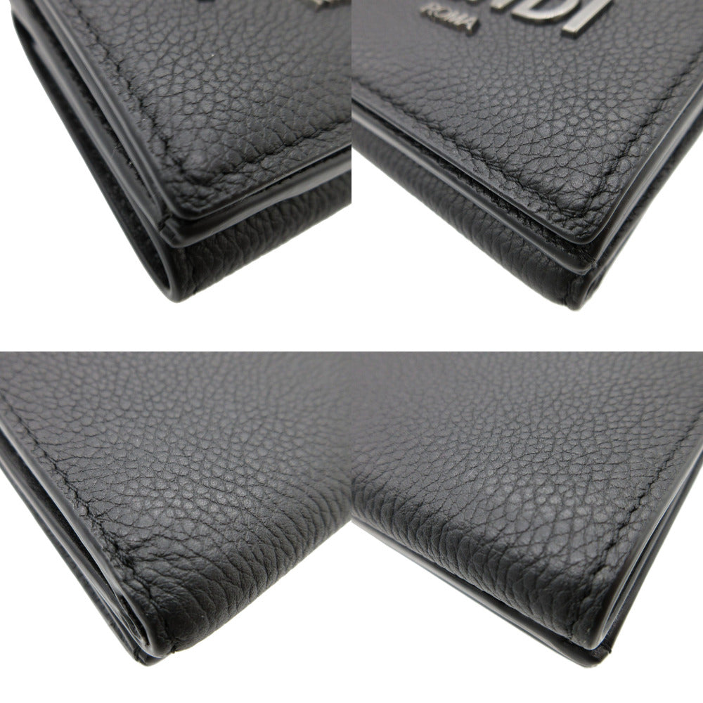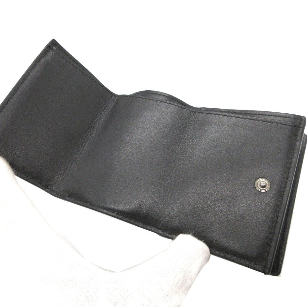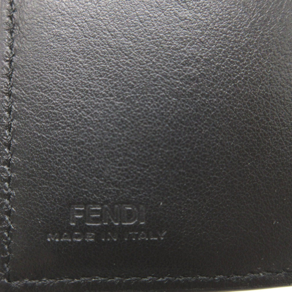 FENDI Tri-fold wallet 7M0280 leather black Compact wallet signature logo mens Used Authentic
