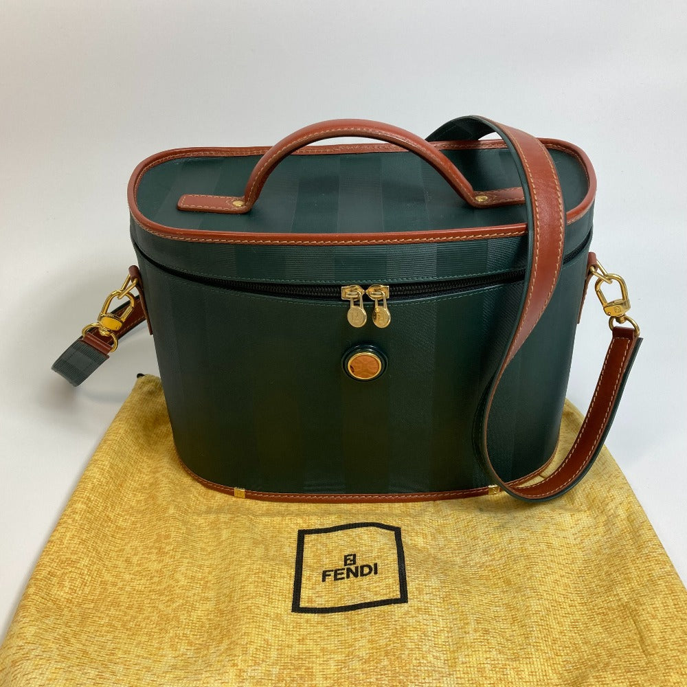 FENDI Vanity bag Leather / PVC Green x brown Pecan bag Women Used Authentic