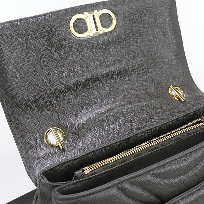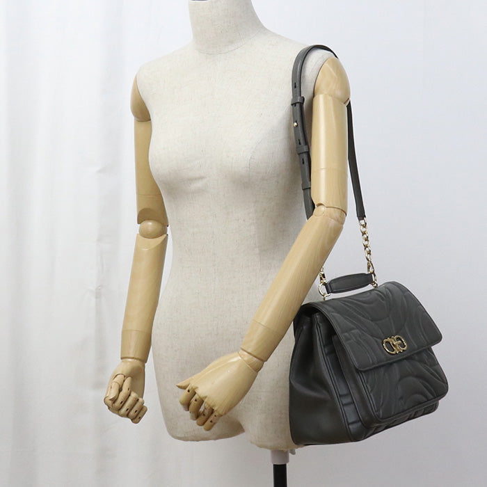 FERRAGAMO 21 0429 2WAY Gancini Handbag Calfskin gray Women