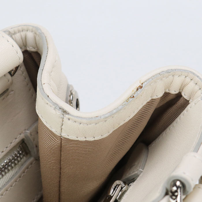FERRAGAMO 21 309 2WAY Vara ribbon Tote Bag leather White Women
