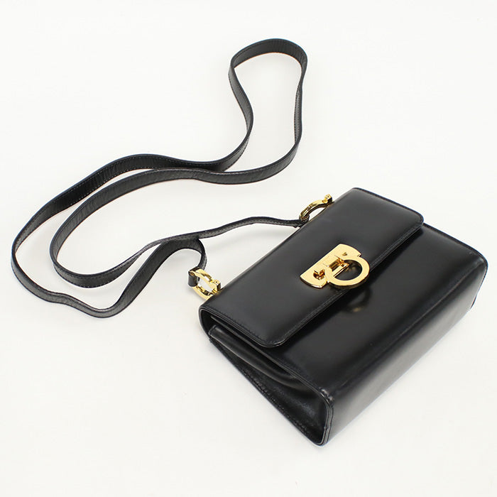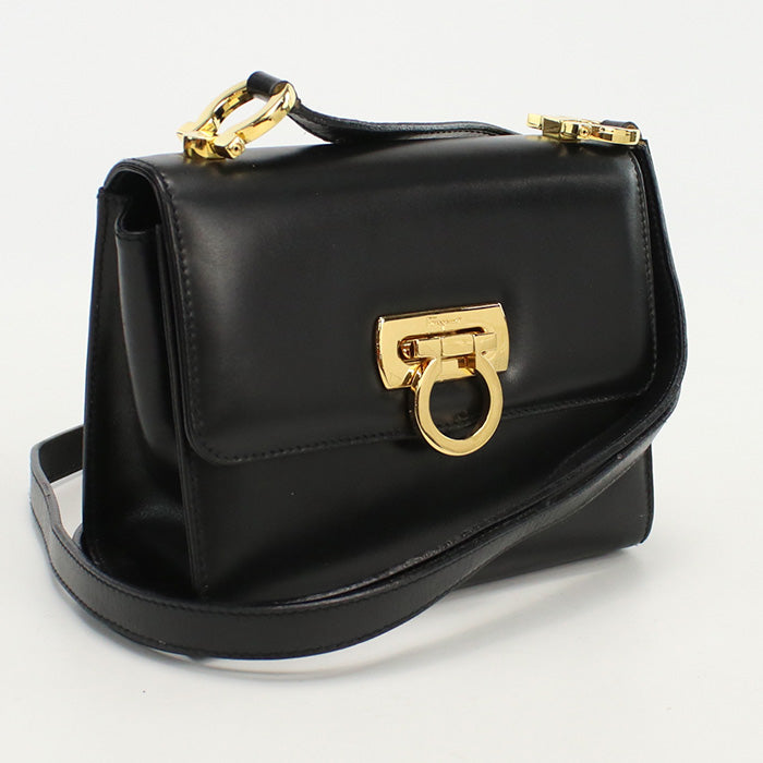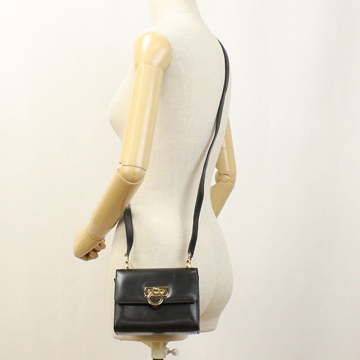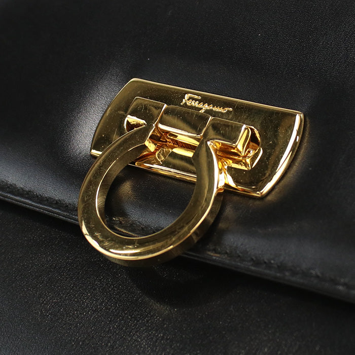 FERRAGAMO 21 4797 Shoulder Bag Gancini Diagonal leather black Women
