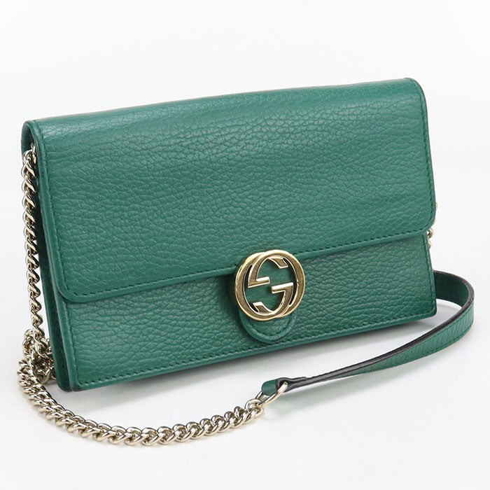 GUCCI 615523 Interlocking G Chain wallet leather Green Women |