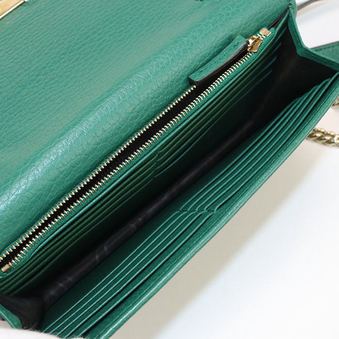 GUCCI 615523 Interlocking G Chain wallet leather Green Women