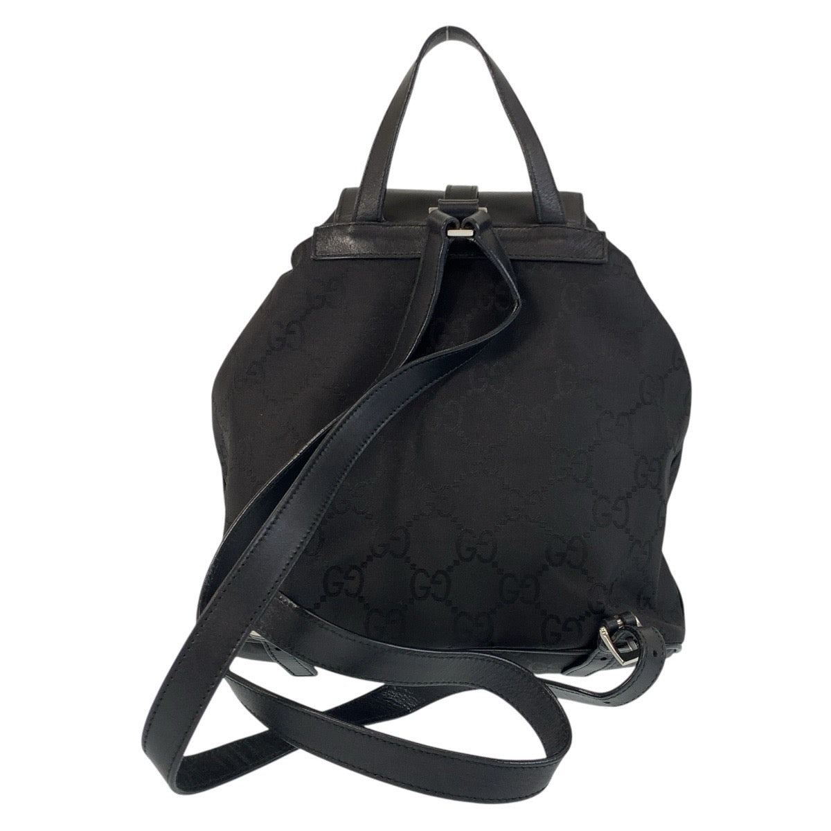 GUCCI Backpack 003 0245 Nylon, Leather Black SilverMetal Backpack Jackie GG pattern Women Used Authentic