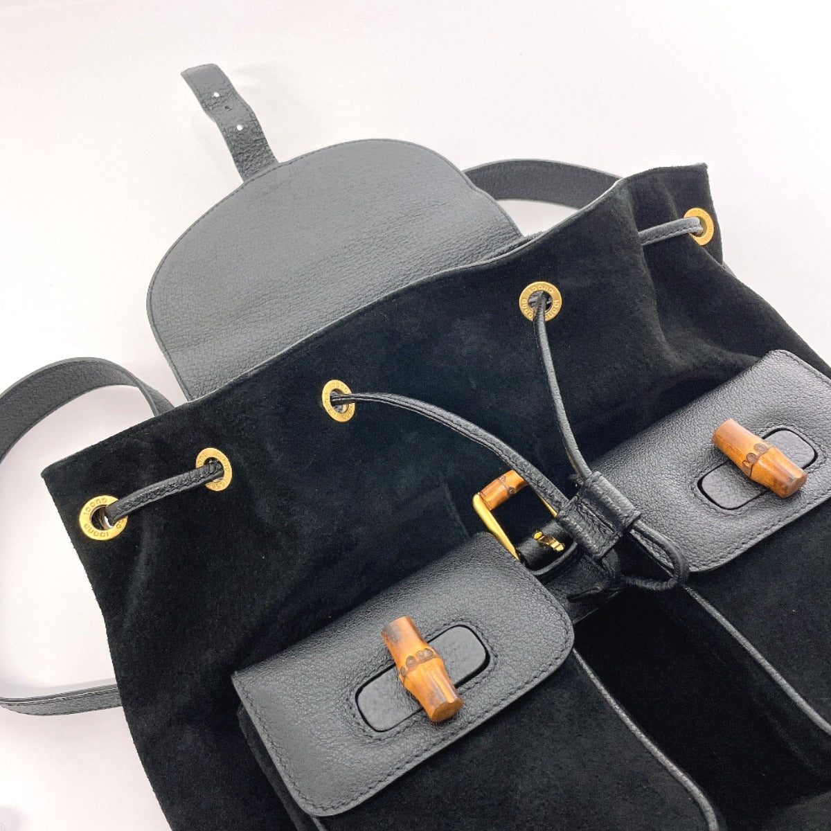 GUCCI Backpack 003・1998 Suede, Leather black Bamboo