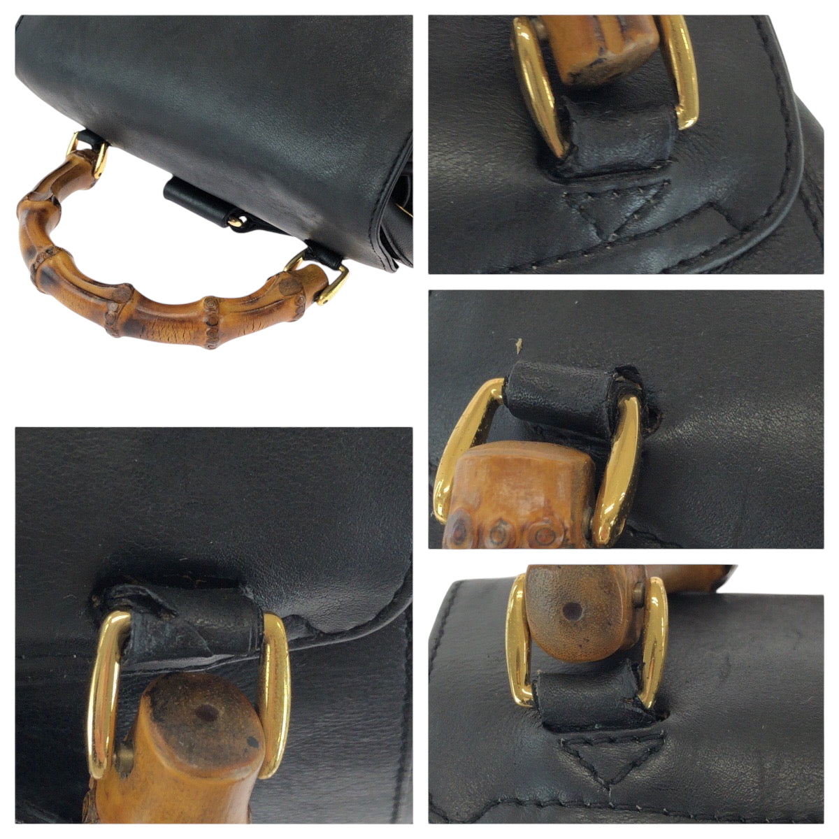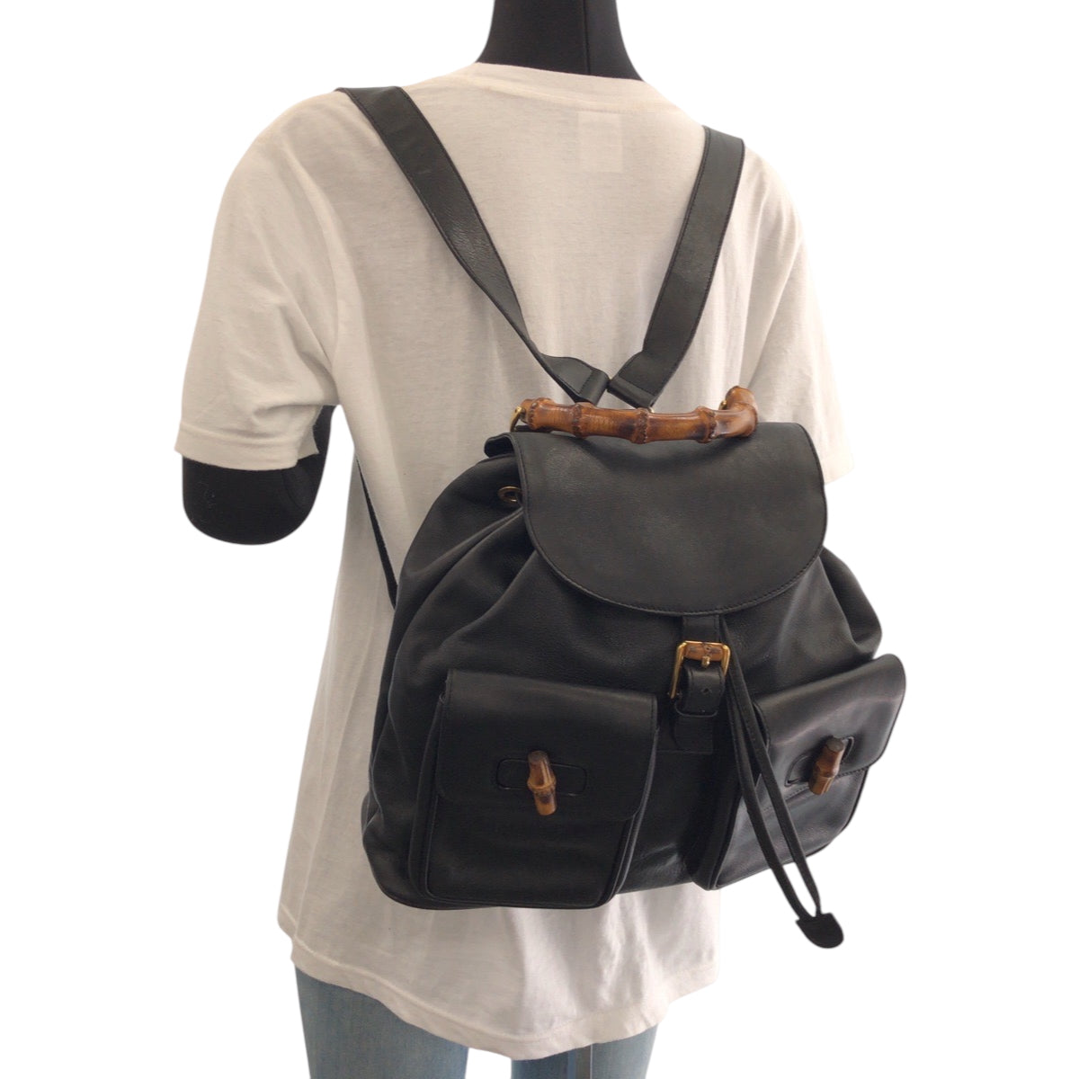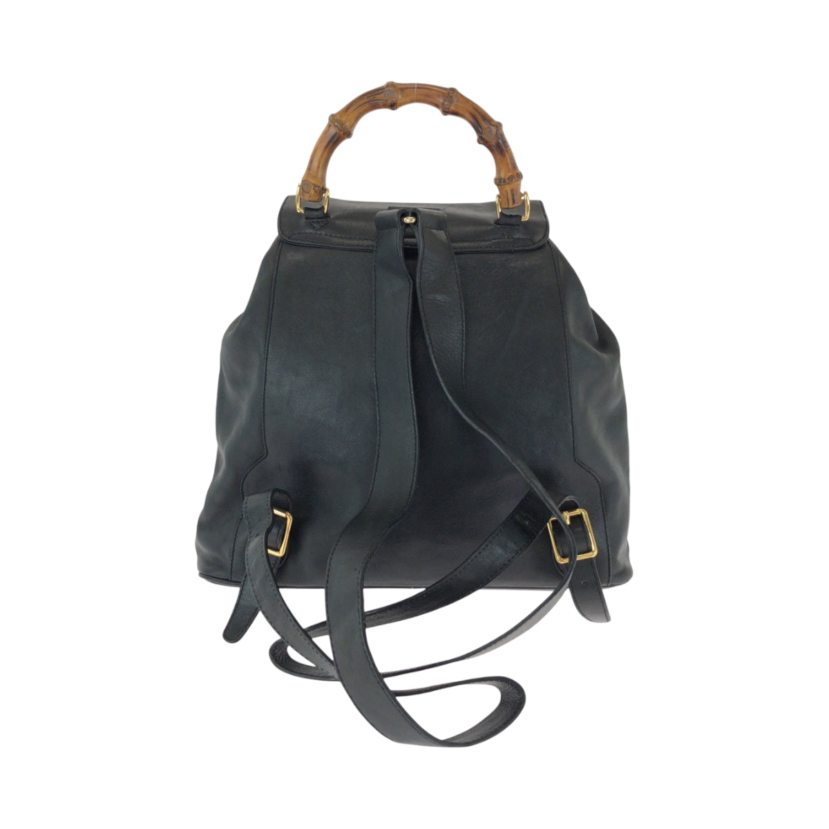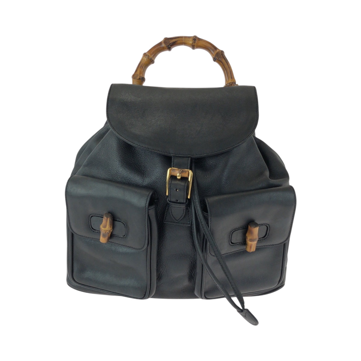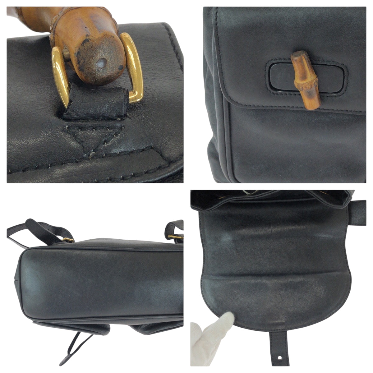 GUCCI Backpack 003 2058 0016 leather Black Brown Gold Metal Backpack Backpack Bamboo Women Used Authentic