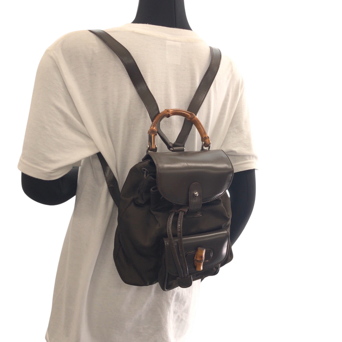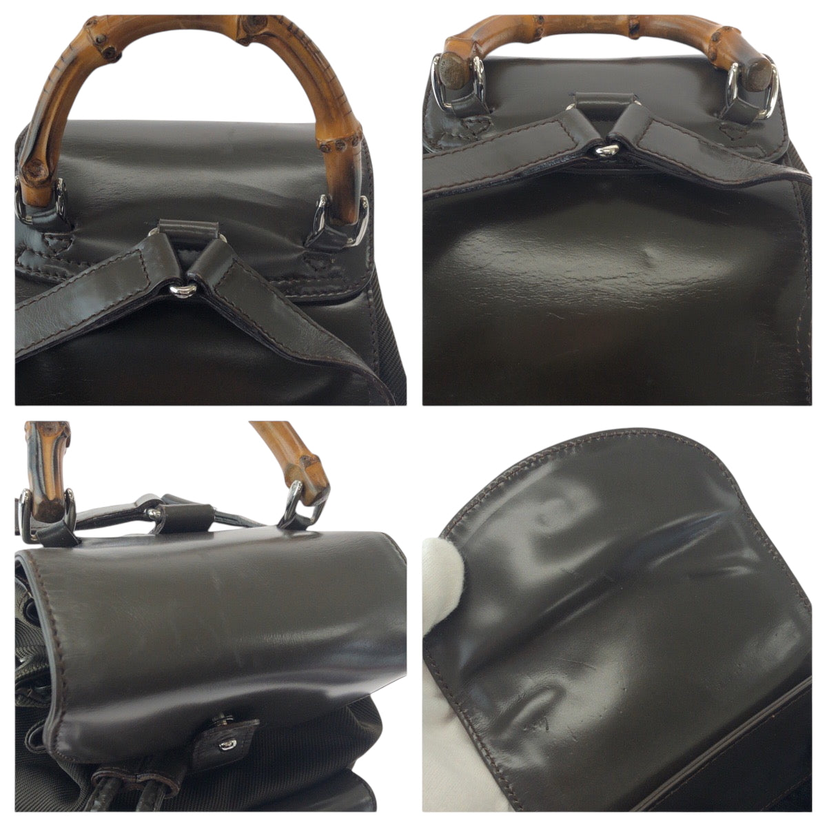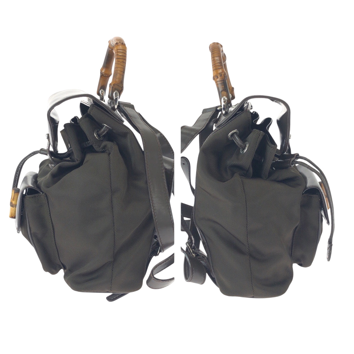 GUCCI Backpack 003 2058 Nylon Khaki Brown SilverMetal Backpack Backpack Bamboo Old Gucci Women Used Authentic