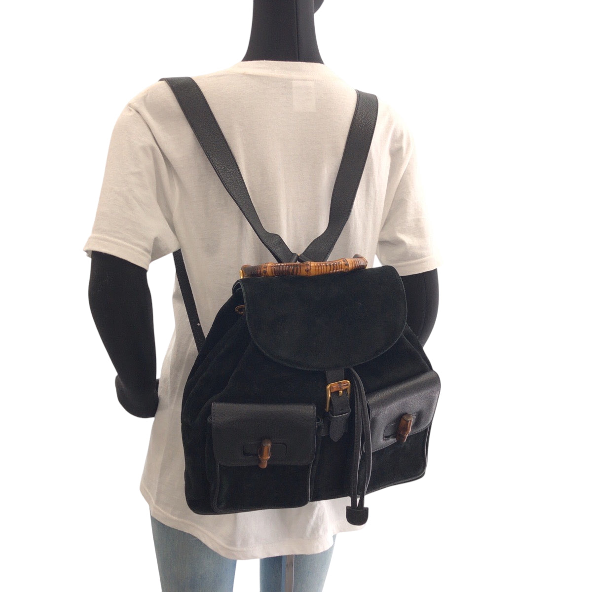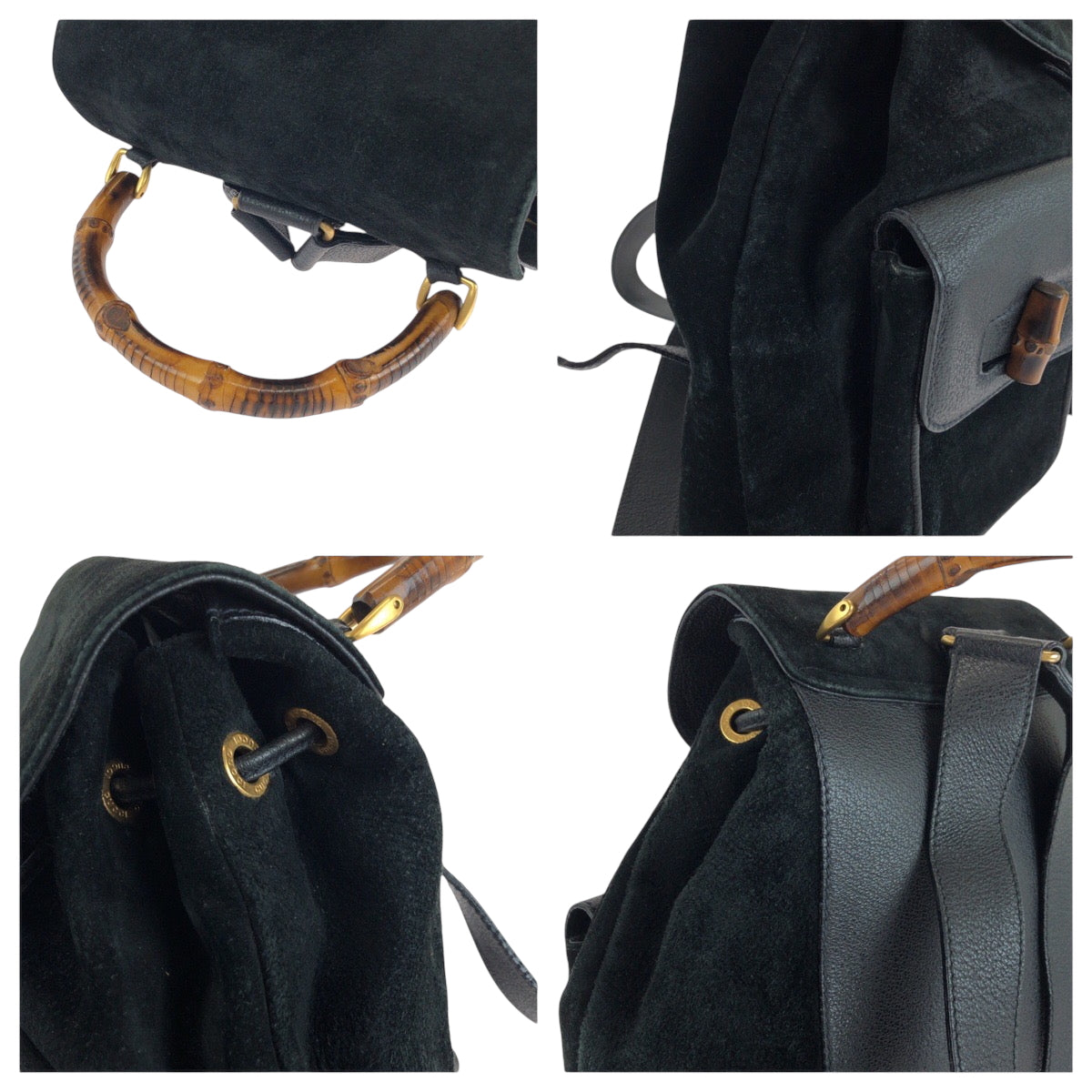 GUCCI Backpack 003 2058 Suede, Leather black Backpack Backpack Bamboo Women Used Authentic