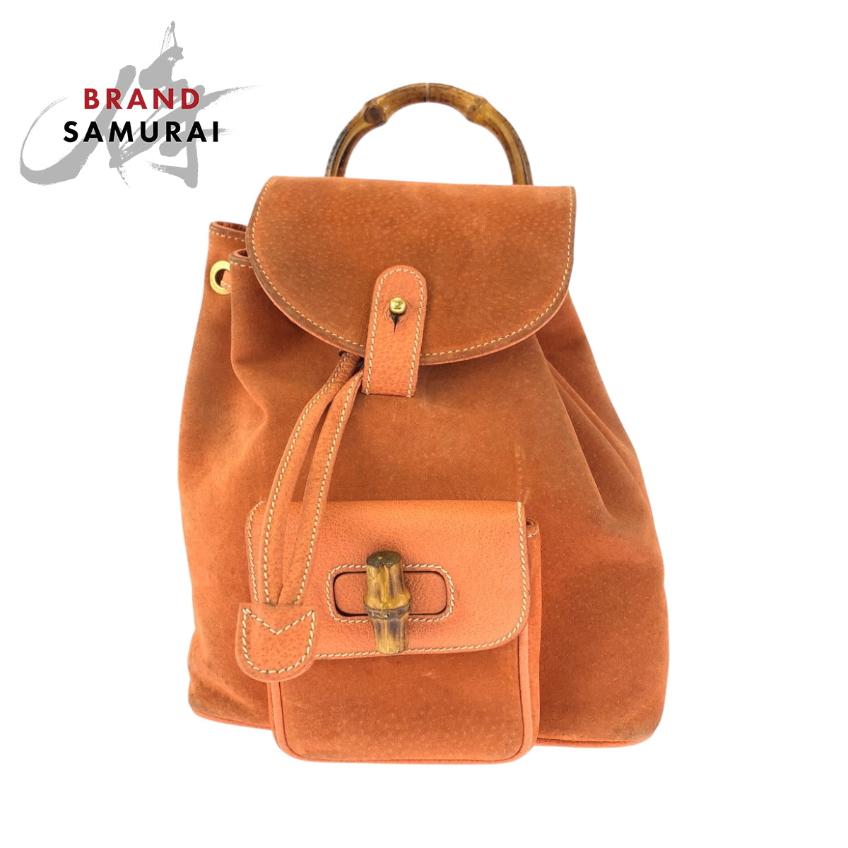 GUCCI Backpack 003 3444 0030 Suede Orange Brown Gold Metal Backpack Backpack Bamboo Women Used Authentic