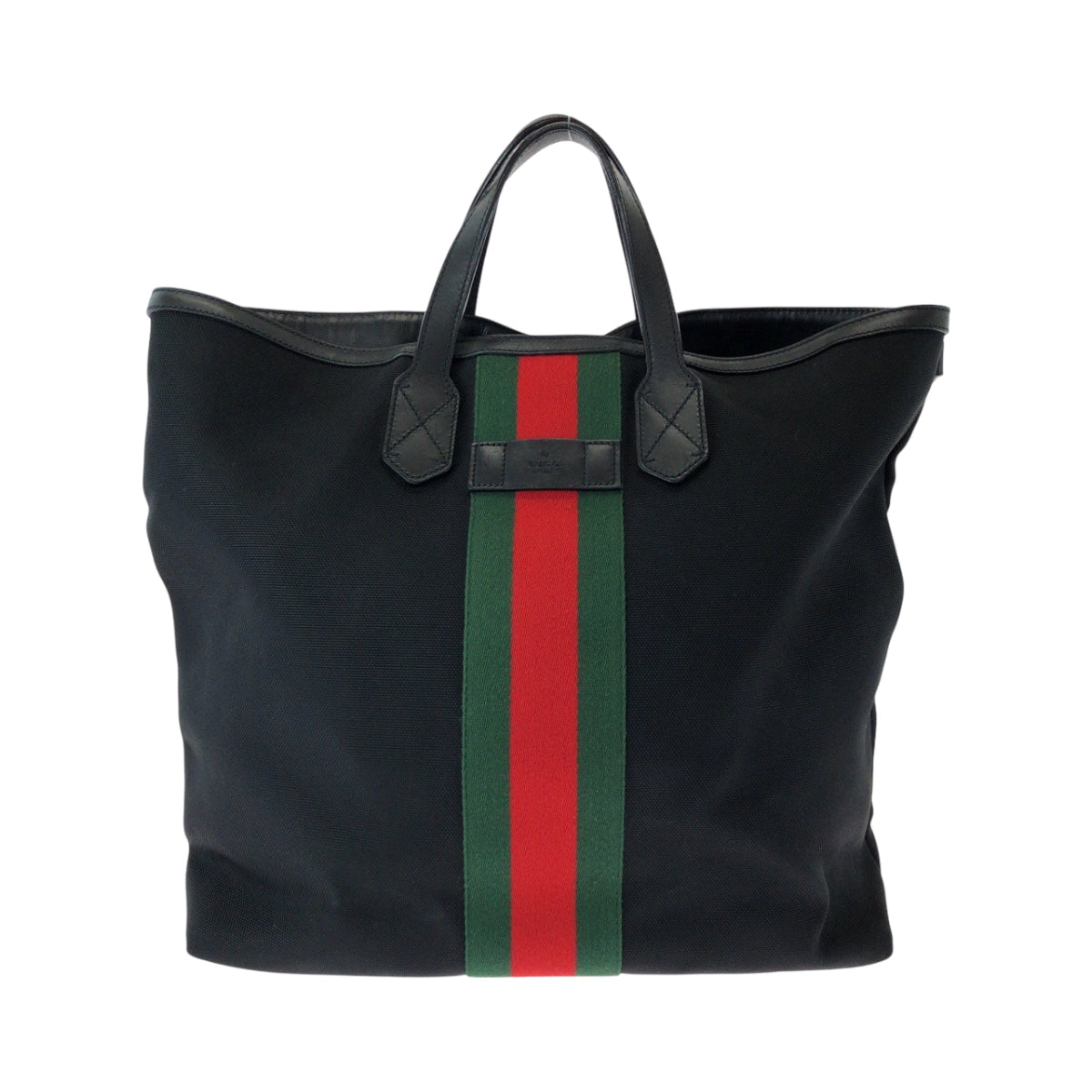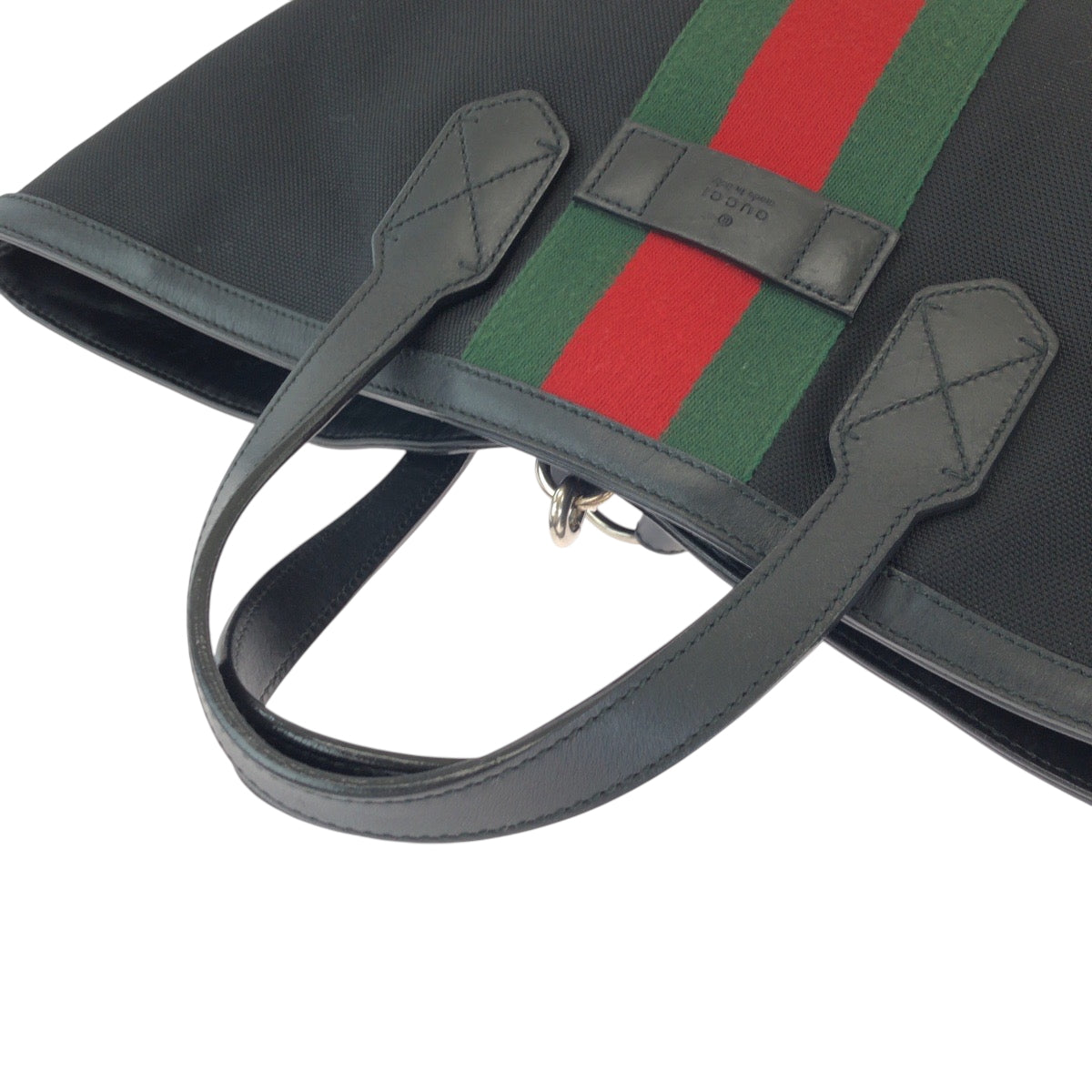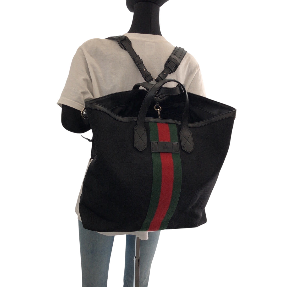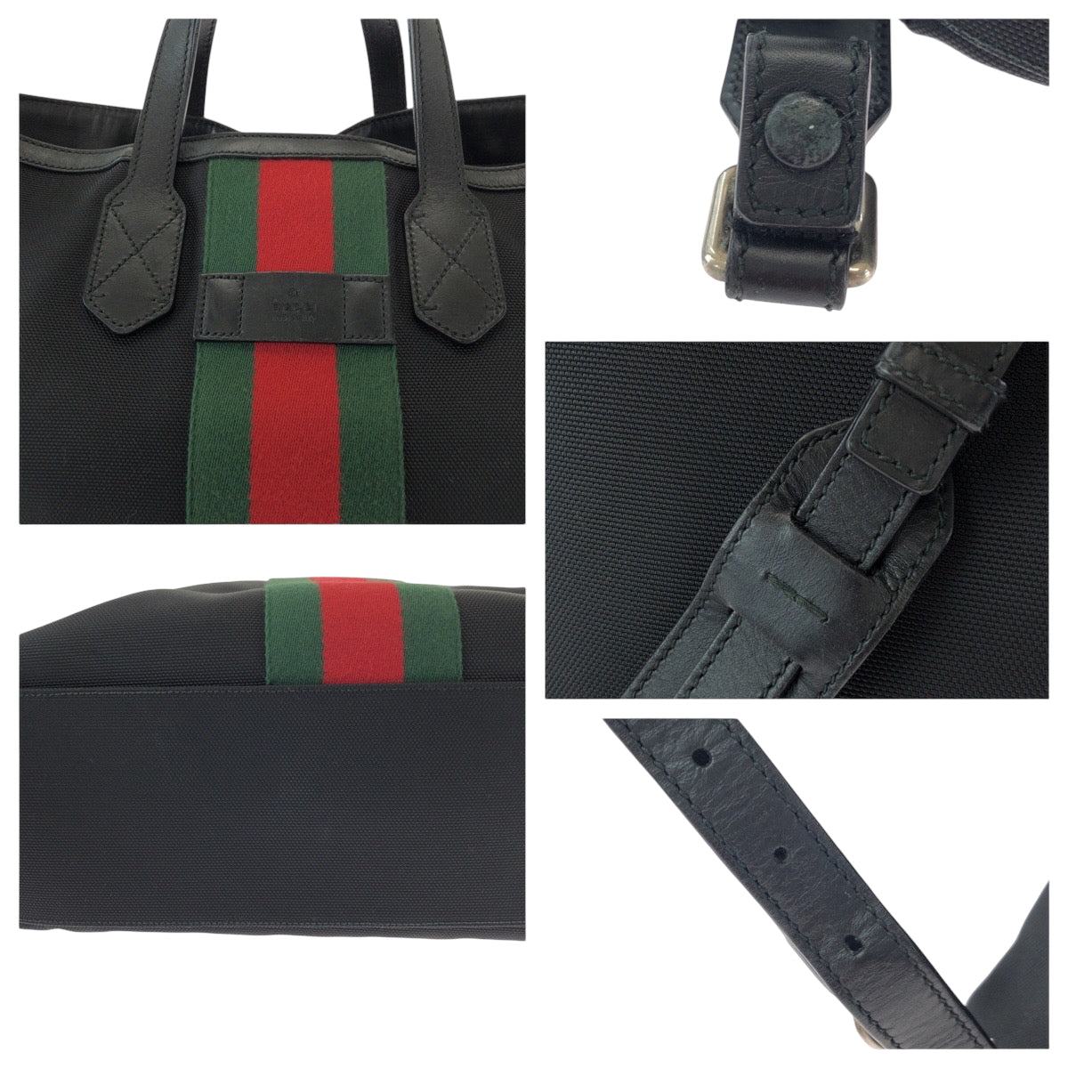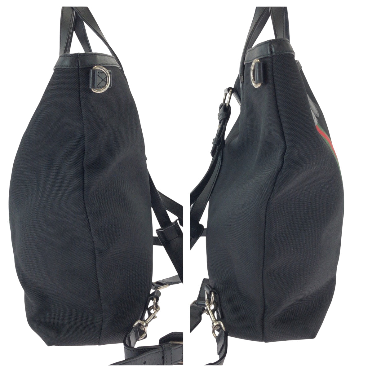 GUCCI Backpack 387105 canvas Black red green Backpack Tote Bag 2way Sherry line mens Used Authentic
