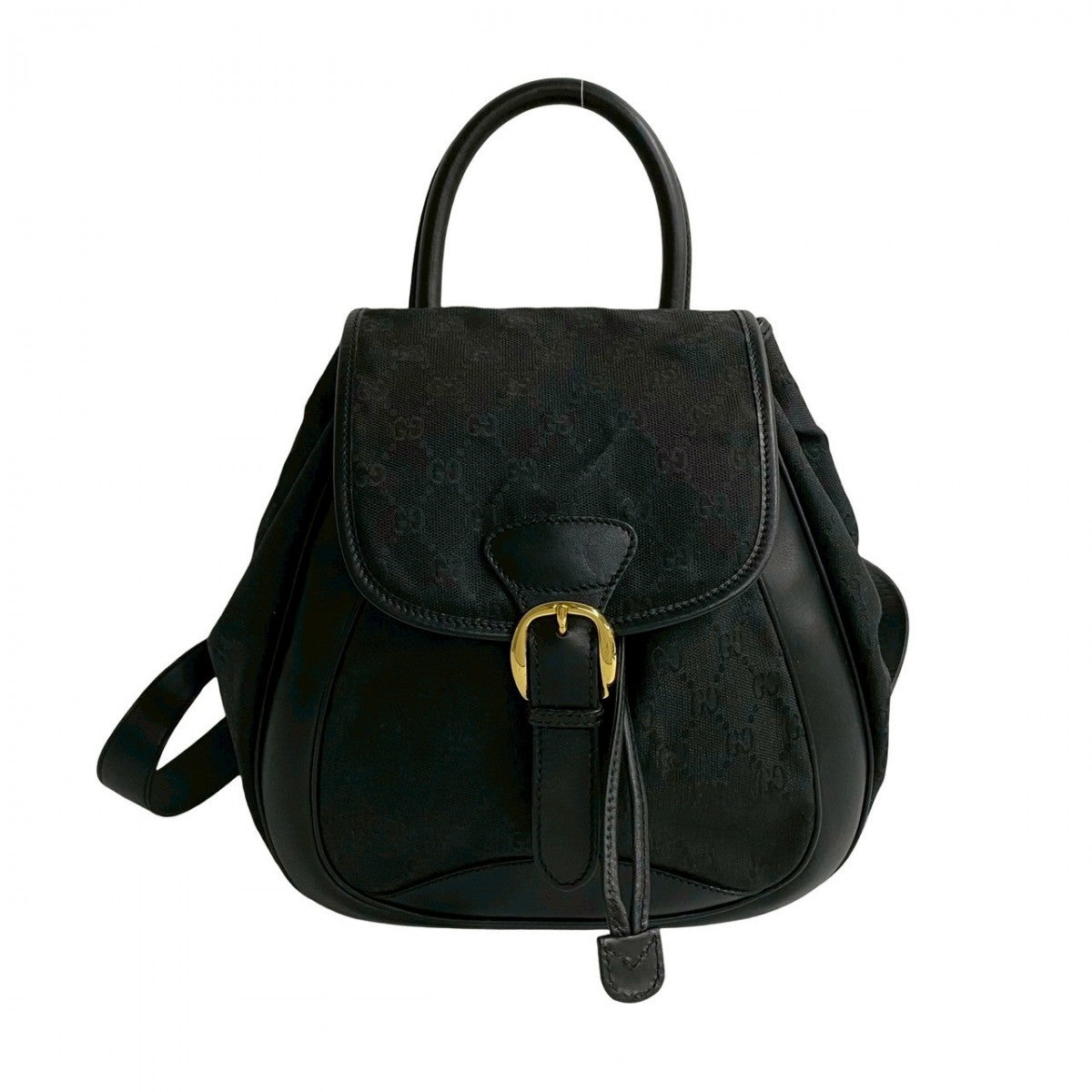 GUCCI Backpack Canvas, Leather black GG logo Pattern Old Gucci Women Used Authentic