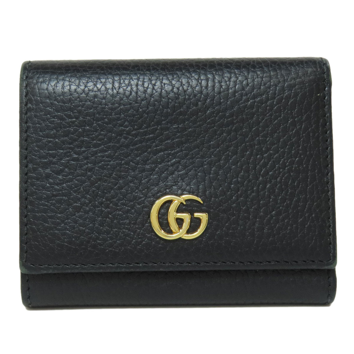 GUCCI Bifold Wallet 474746 leather black GG Marmont Tri-Fold Wallet Women Used Authentic