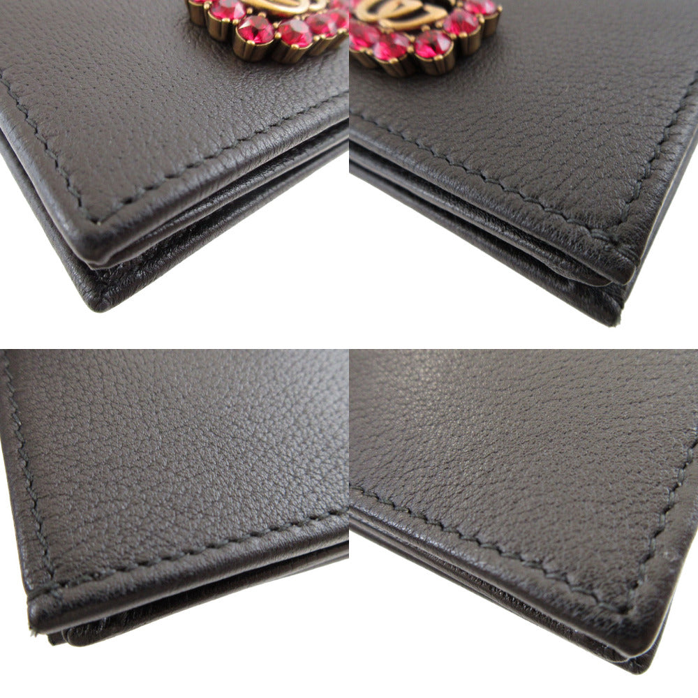 GUCCI Bifold Wallet 499783 leather black Compact Wallet with Rhinestones GG Marmont unisex(Unisex) Used Authentic