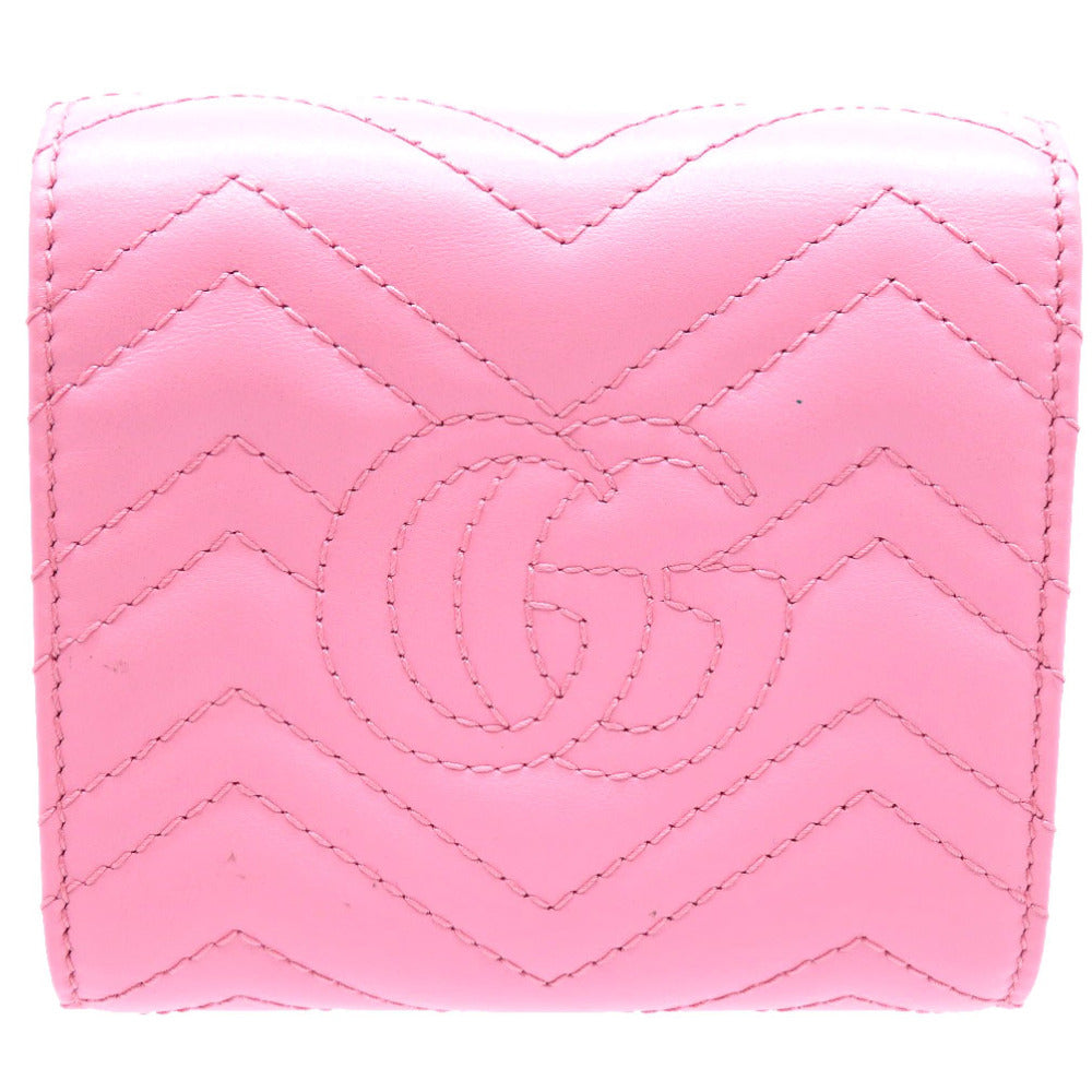 GUCCI Bifold Wallet 598629 leather pink Compact wallet GG Marmont Women Used Authentic
