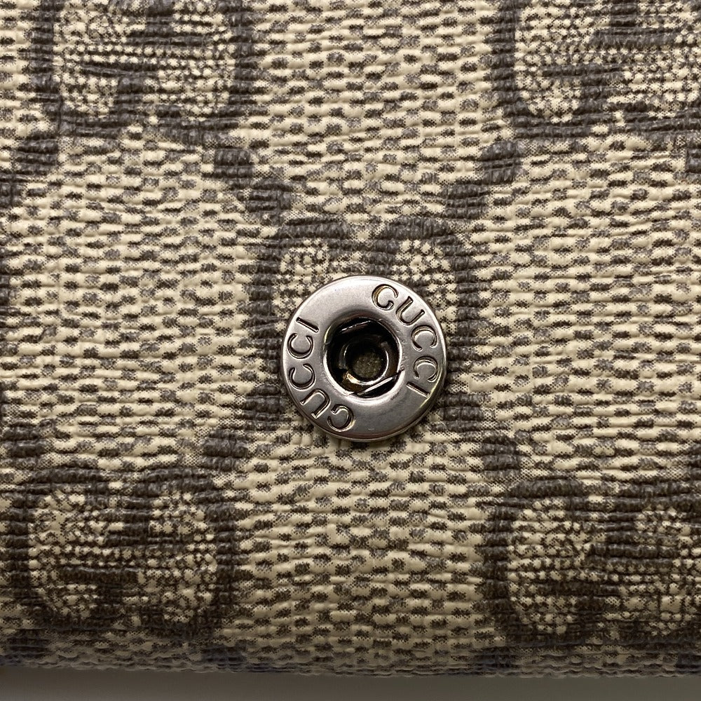 GUCCI Bifold Wallet GG Supreme Canvas beige Chain wallet GG Supreme Women Used Authentic