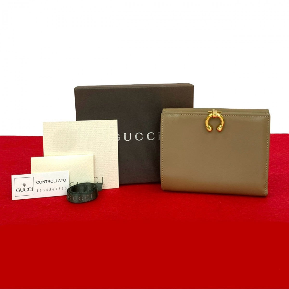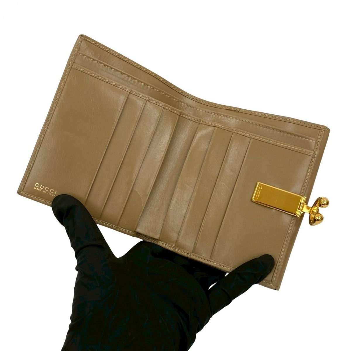 GUCCI Bifold Wallet leather beige