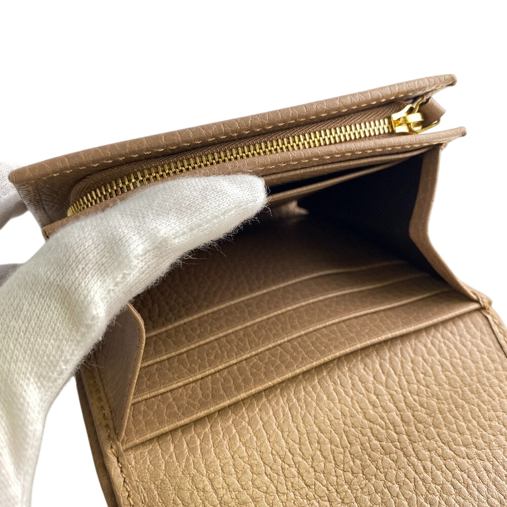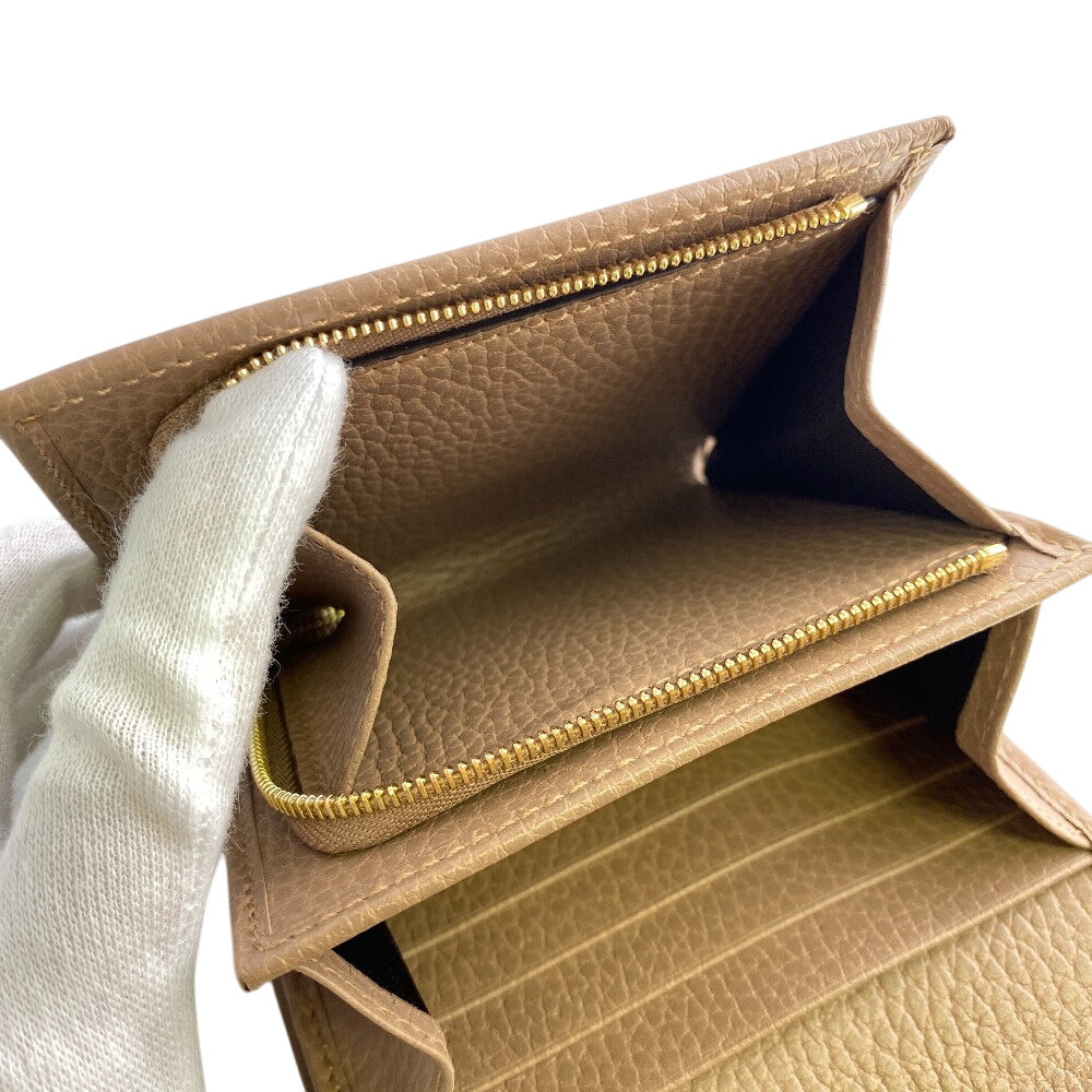 GUCCI Bifold Wallet leather beige GG Marmont Women Used Authentic