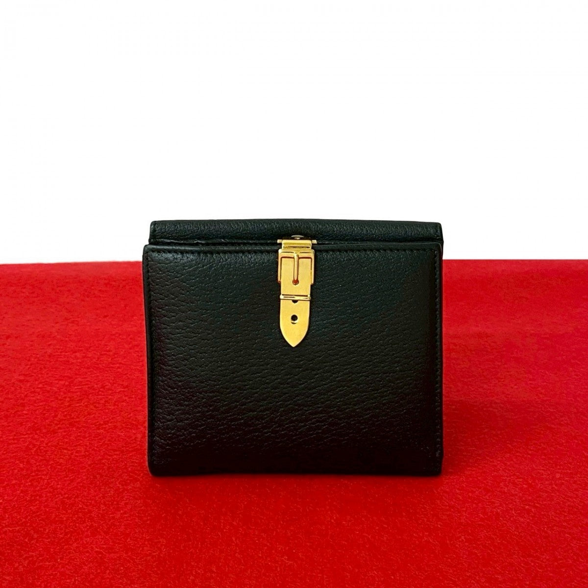 GUCCI Bifold Wallet leather black Belt motif Metal Women(Unisex) Used Authentic