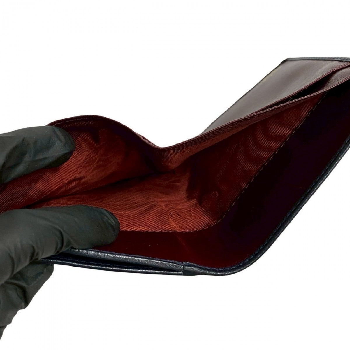 GUCCI Bifold Wallet leather Navy Horsebit Metal Women Used Authentic