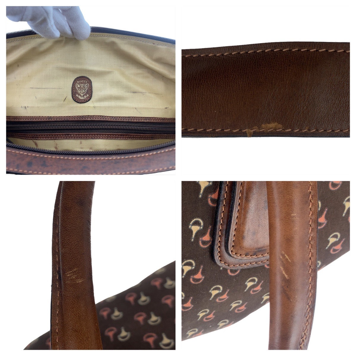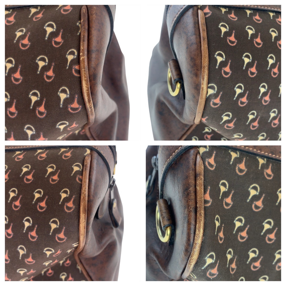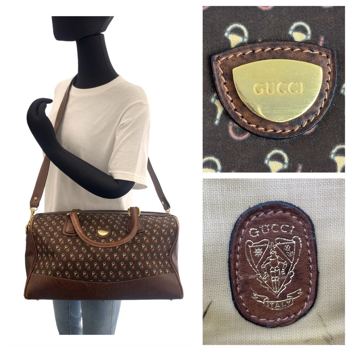 GUCCI Boston Duffel bag Nylon, Leather Brown Gold Metal Boston Duffel bag Crossbody Shoulder Bag 2way Old Gucci Horsebit Pattern Women Used Authentic