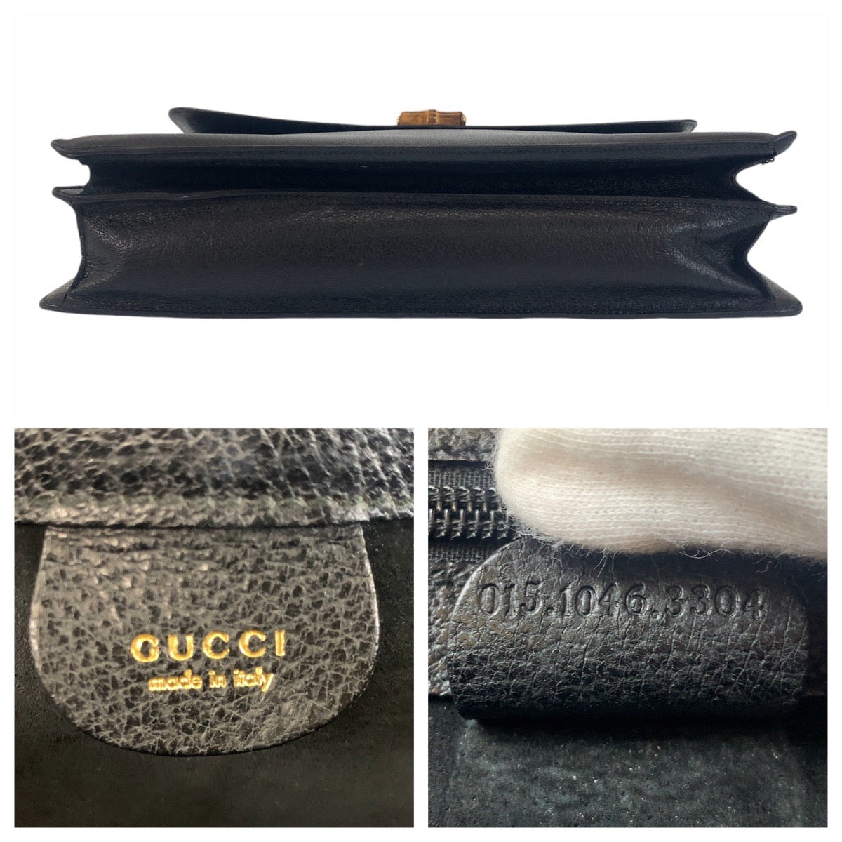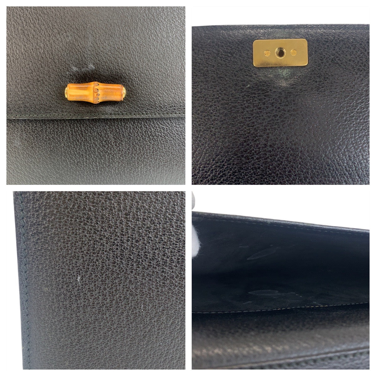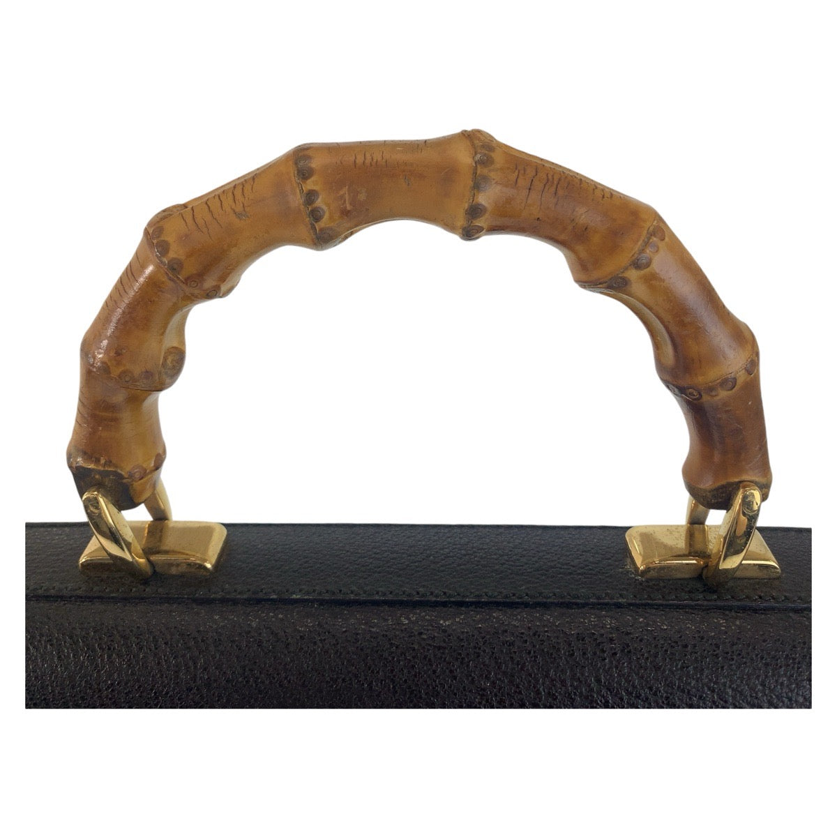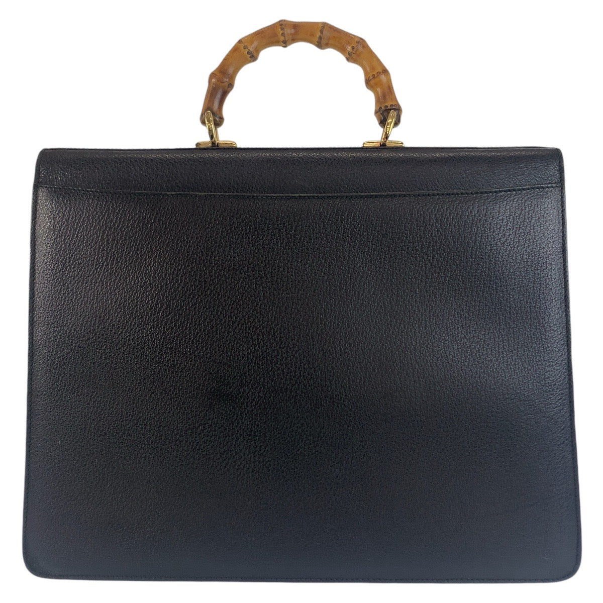 GUCCI Business bag 015.1046.3304 leather Black GoldMetal Business bag briefcase A4 compatible Bamboo Old Gucci mens Used Authentic