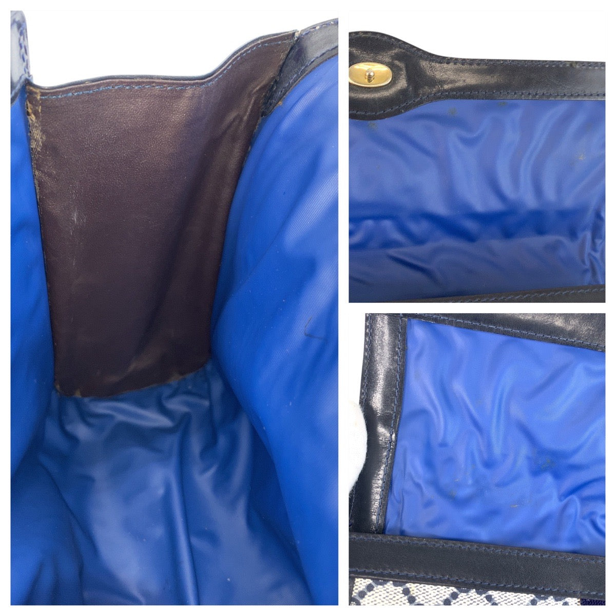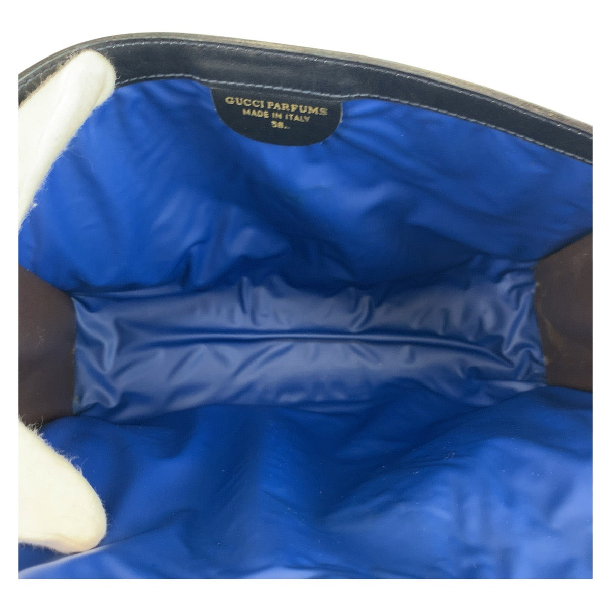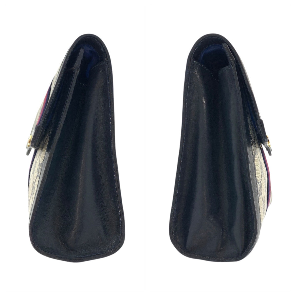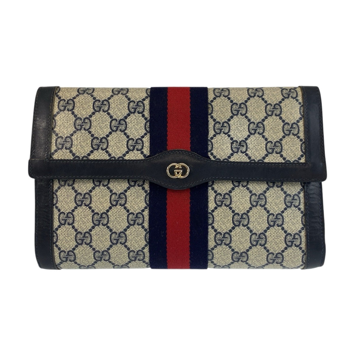 GUCCI Clutch bag 38 GG Supreme canvas, leather Gray Navy Gold Metal Clutch bag business bag Sherry line mens Used Authentic