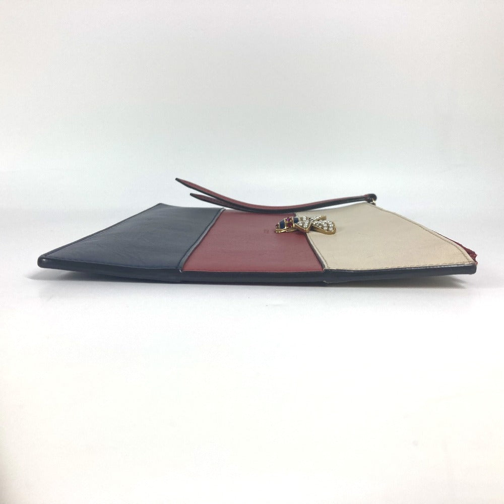 GUCCI Clutch bag 476077 leather Red BEE Bee Border Pearl Rhinestone