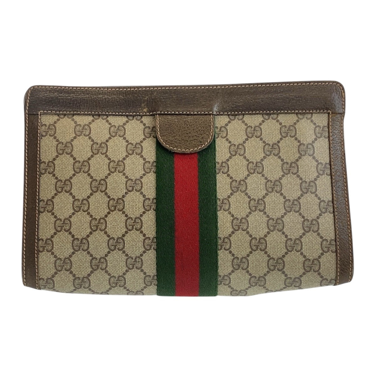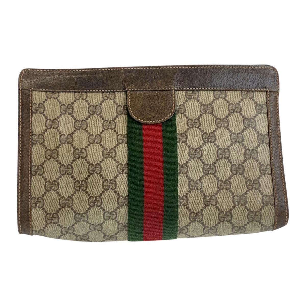 GUCCI Clutch bag 67 014 2125 GG Supreme canvas, leather Beige brown Clutch bag business bag Old Gucci Shelly Line mens Used Authentic