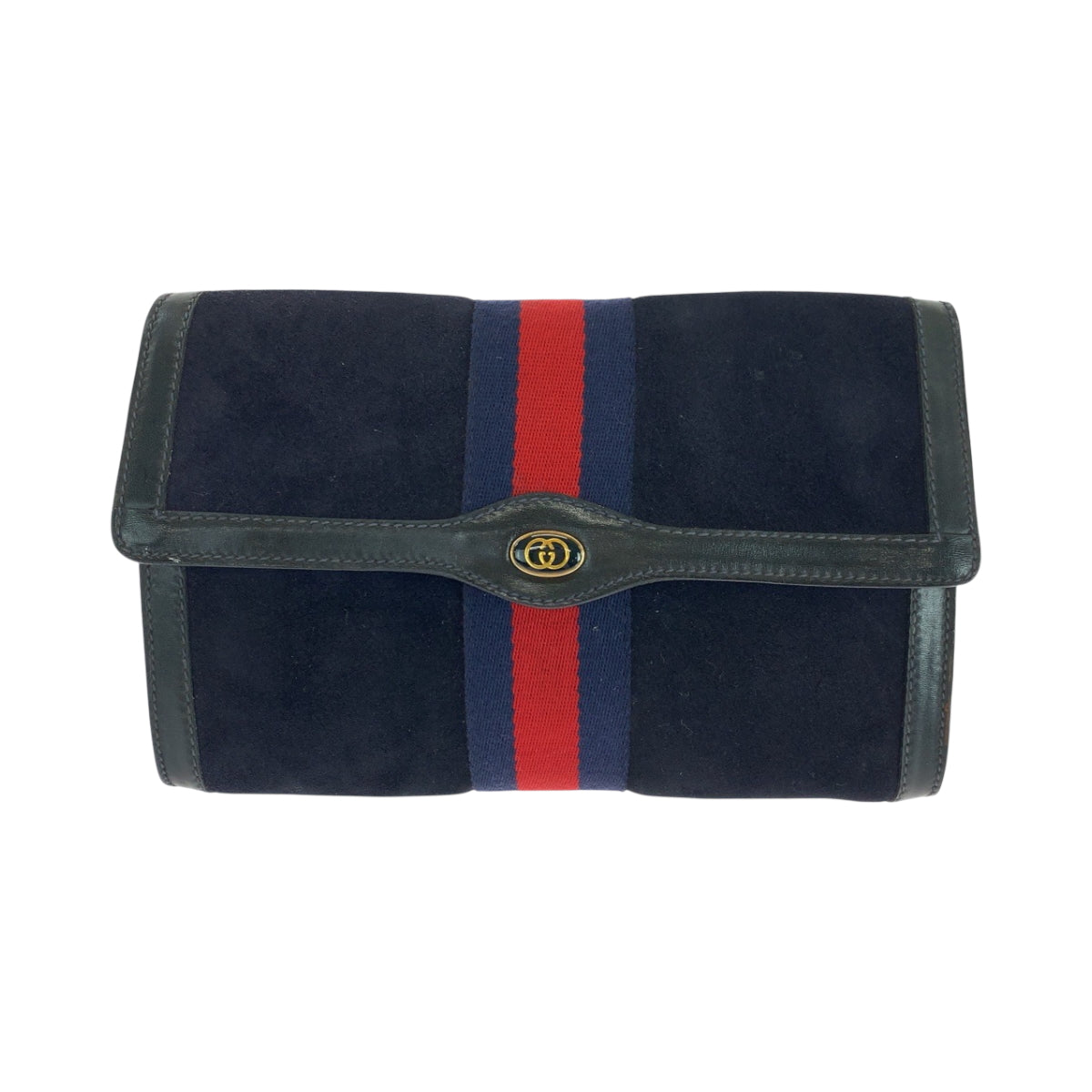 GUCCI Clutch bag 67 014 3088 Suede Navy Red Gold Metal Clutch bag business bag Old Gucci Women Used Authentic