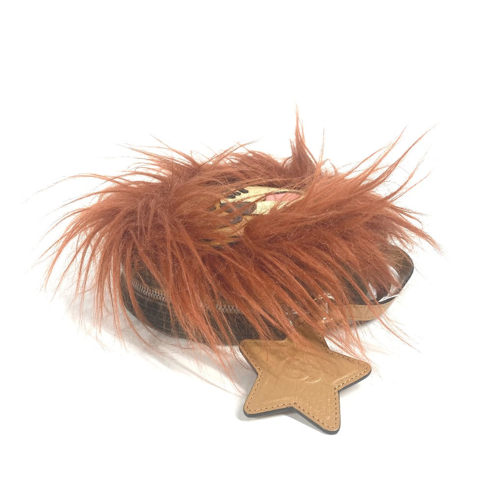 GUCCI Clutch bag 704806 Fur, Leather, Suede Brown GG Lion Lion Round Women Used Authentic