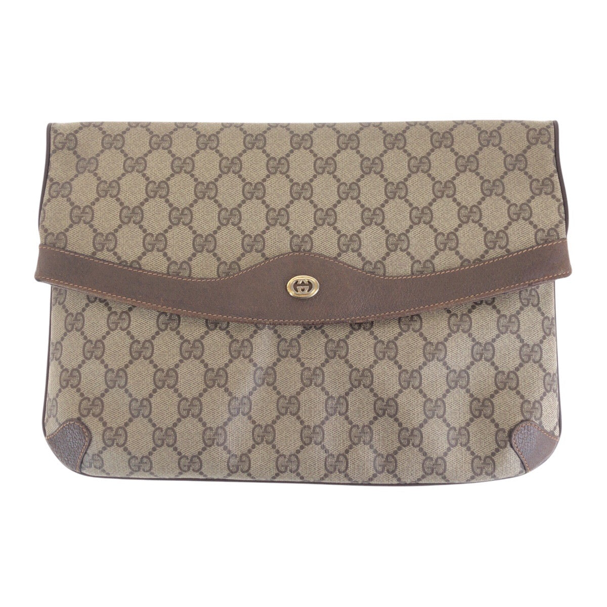GUCCI Clutch bag 89 02075 GG Supreme Canvas Brown Beige Gold Metal Old Gucci