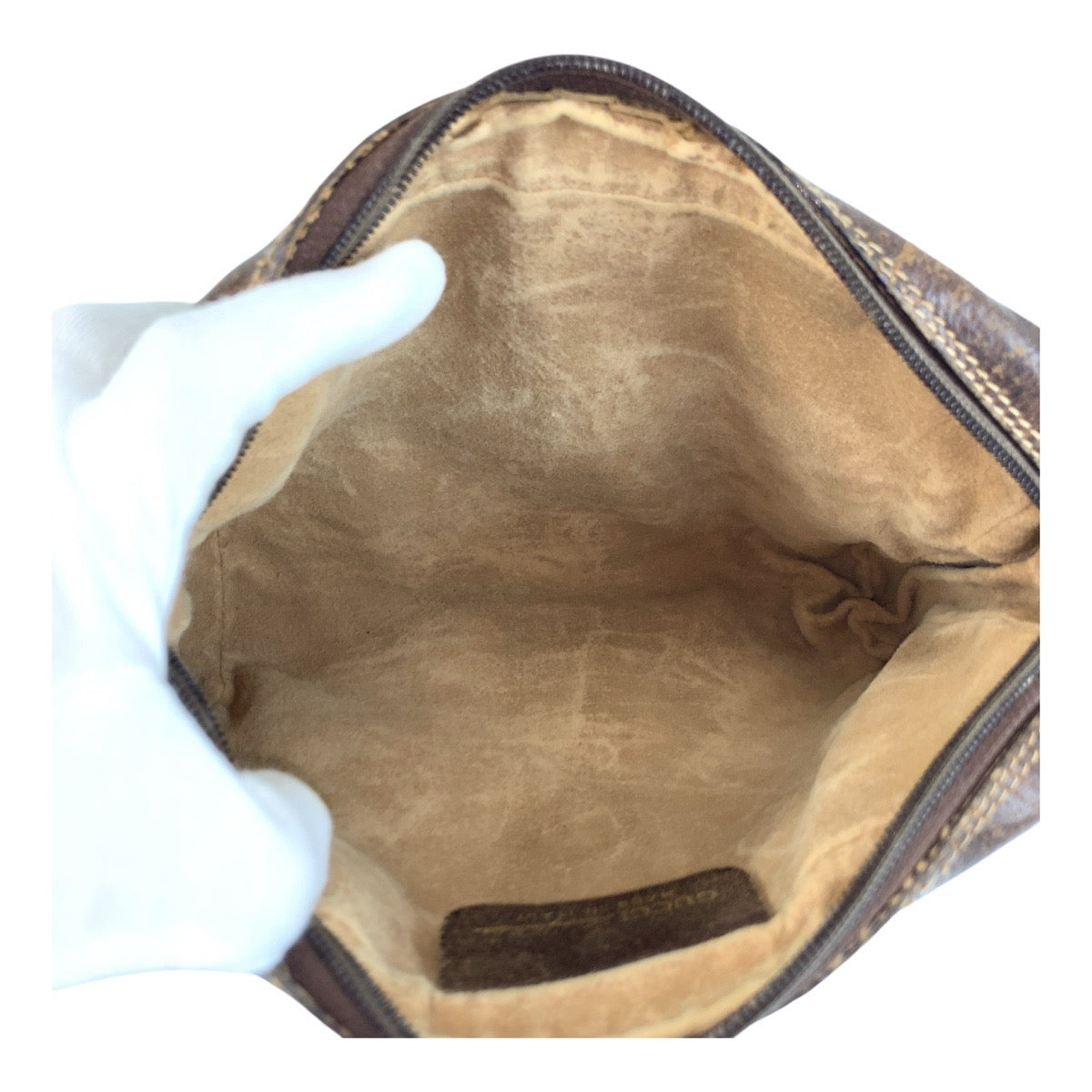 GUCCI Clutch bag 98 69 014 3553 GG Supreme Canvas Beige Brown Gold Metal Sherry Line Old Gucci