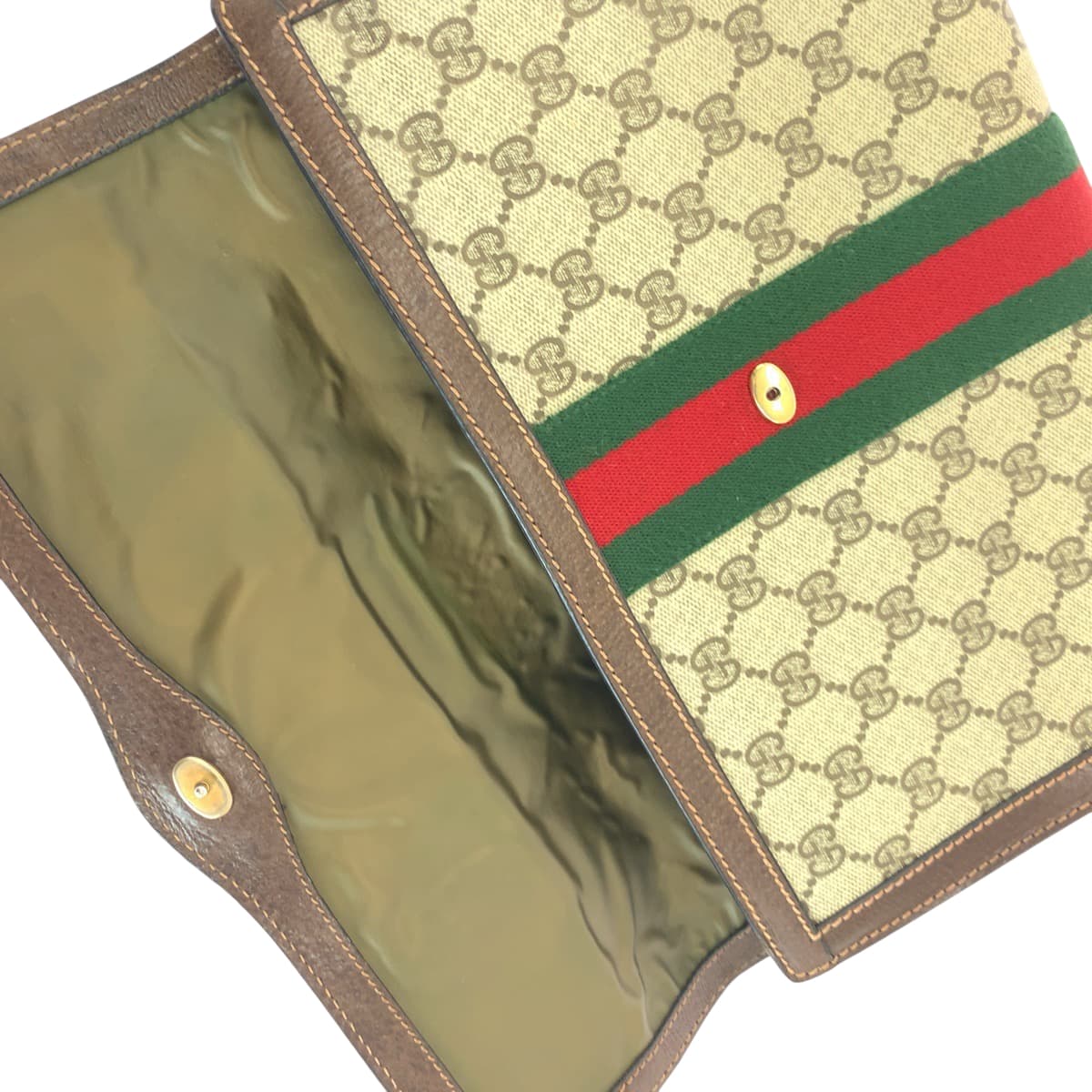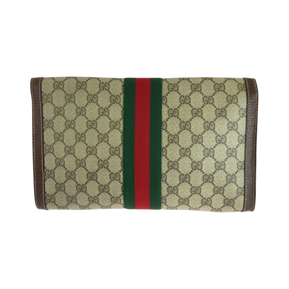 GUCCI Clutch bag GG Supreme Canvas Beige Brown Gold Metal Clutch bag business bag Gucci Perfume Sherry Line Women Used Authentic