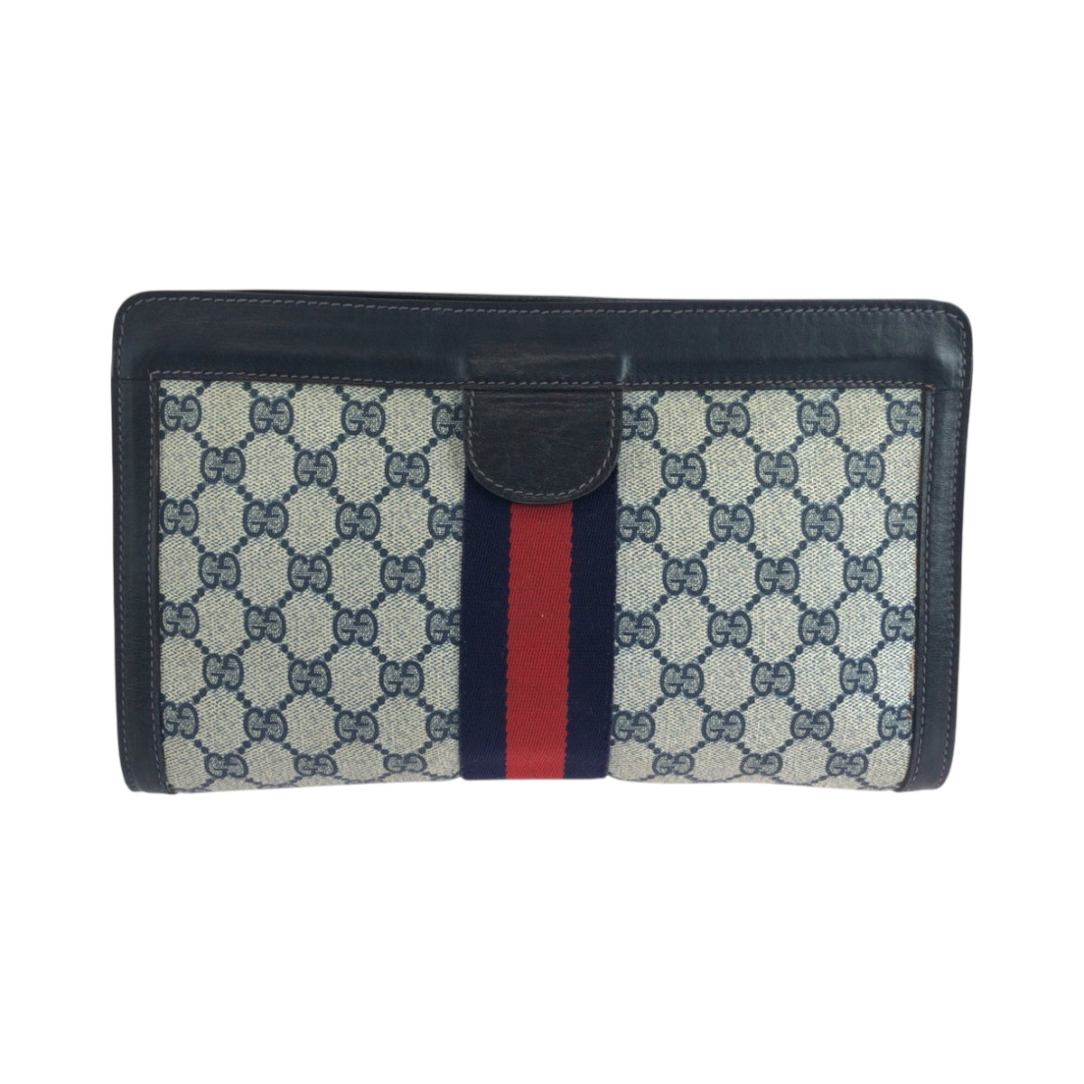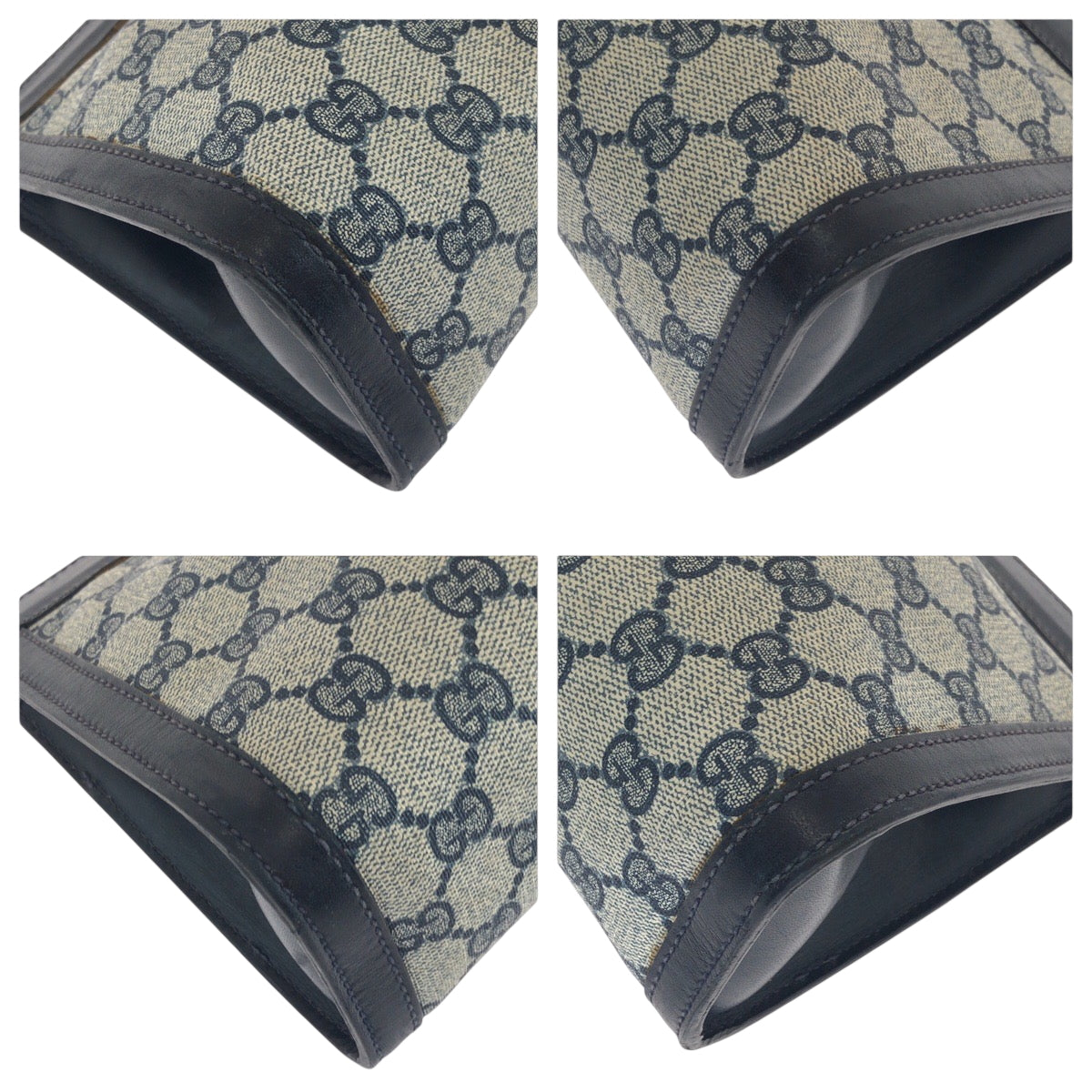 GUCCI Clutch bag GG Supreme Canvas Gray navy Clutch bag business bag Sherry line Women Used Authentic