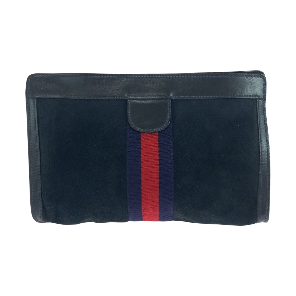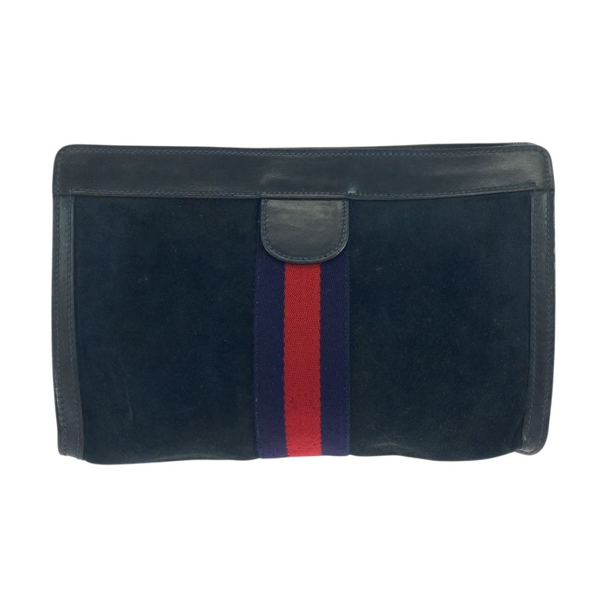 GUCCI Clutch bag Suede Navy Red Blue Old Gucci Shelly Line
