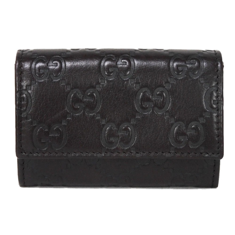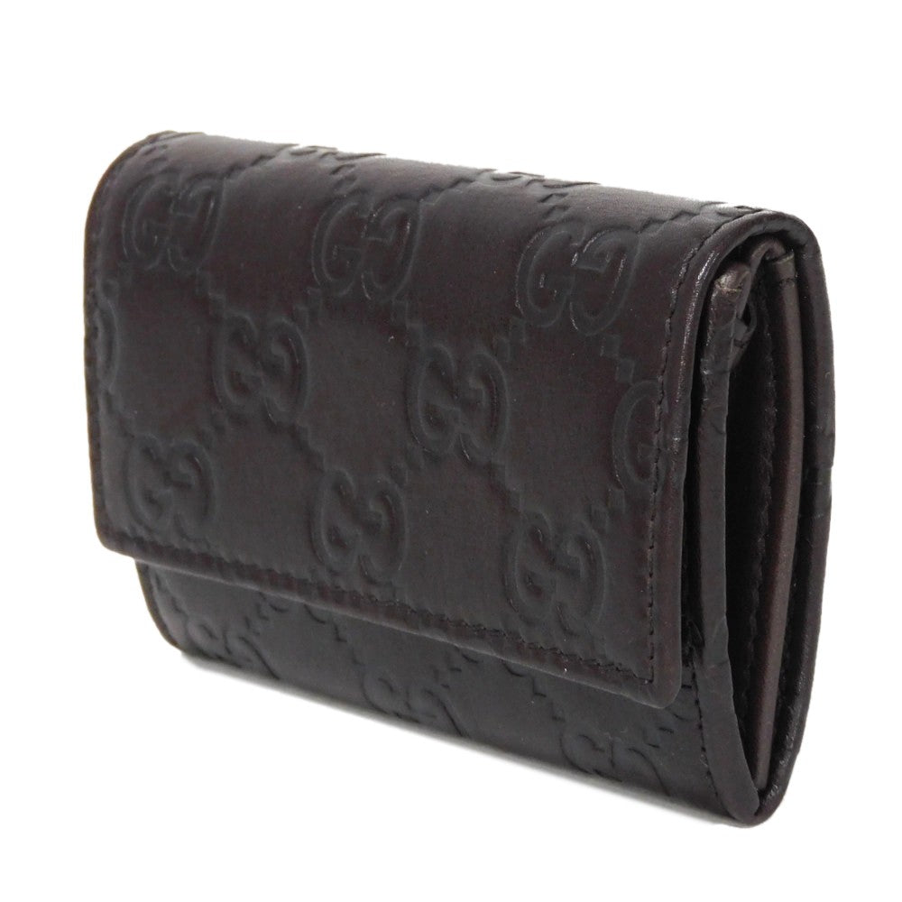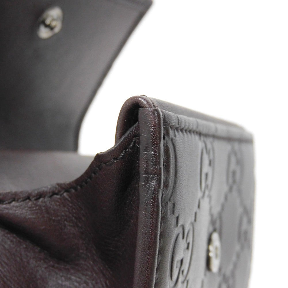 GUCCI Coin case 120964 GG striped leather Dark brown Snap Button Card Case Business Card Holder Pass Case Wallet GG Shima Guccissima coin purse mens Used Authentic