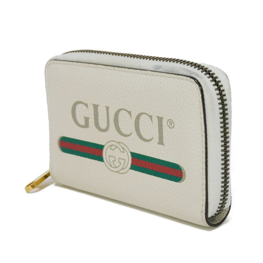 GUCCI Coin case 496319 0GCAT 8820 Textured leather Ivory x green x red Shelley Webb White Vintage logo print Compact zip-around wallet unisex(Unisex) Used Authentic