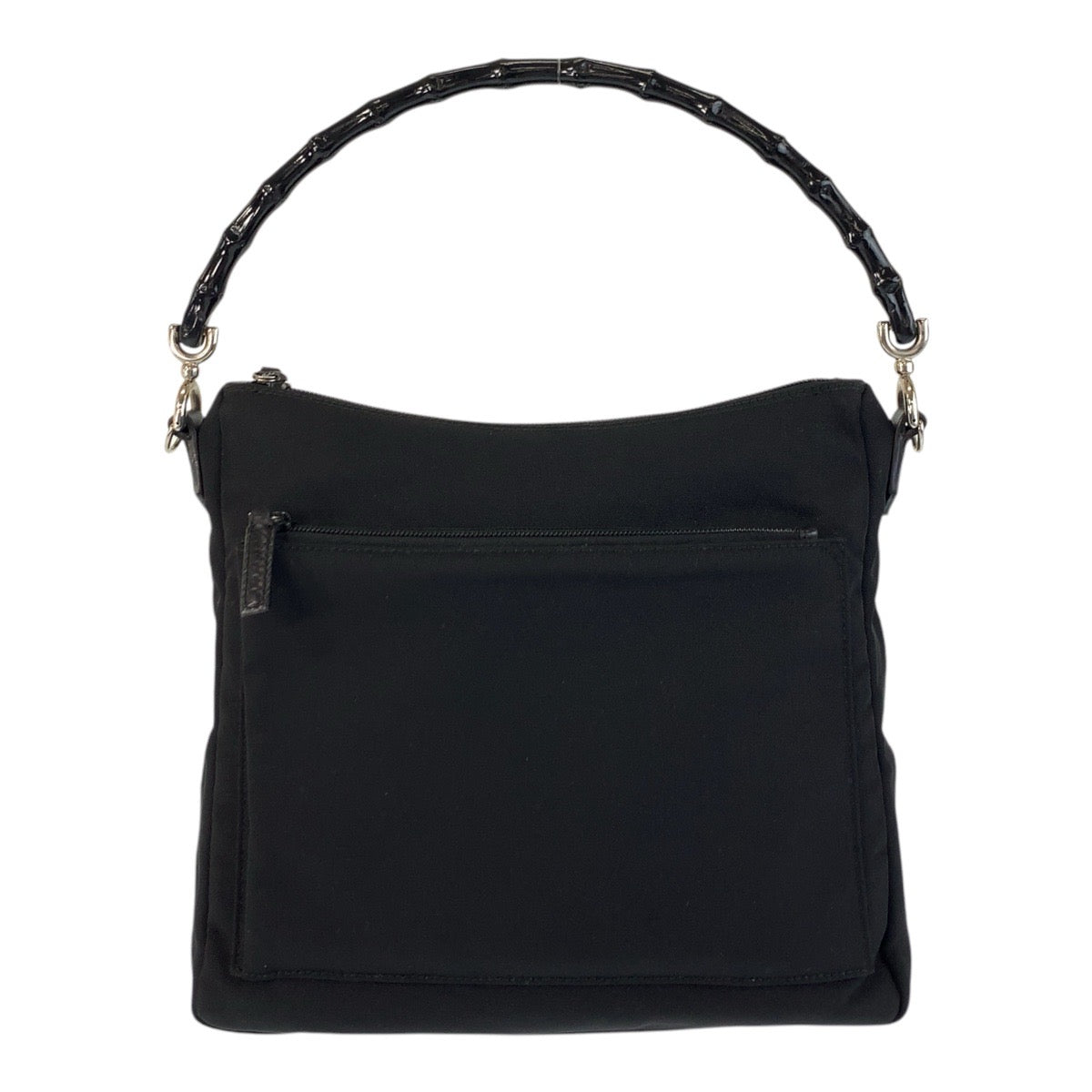GUCCI Handbag 000 0509 Nylon, Bamboo Black SilverMetal Bamboo Women Used Authentic